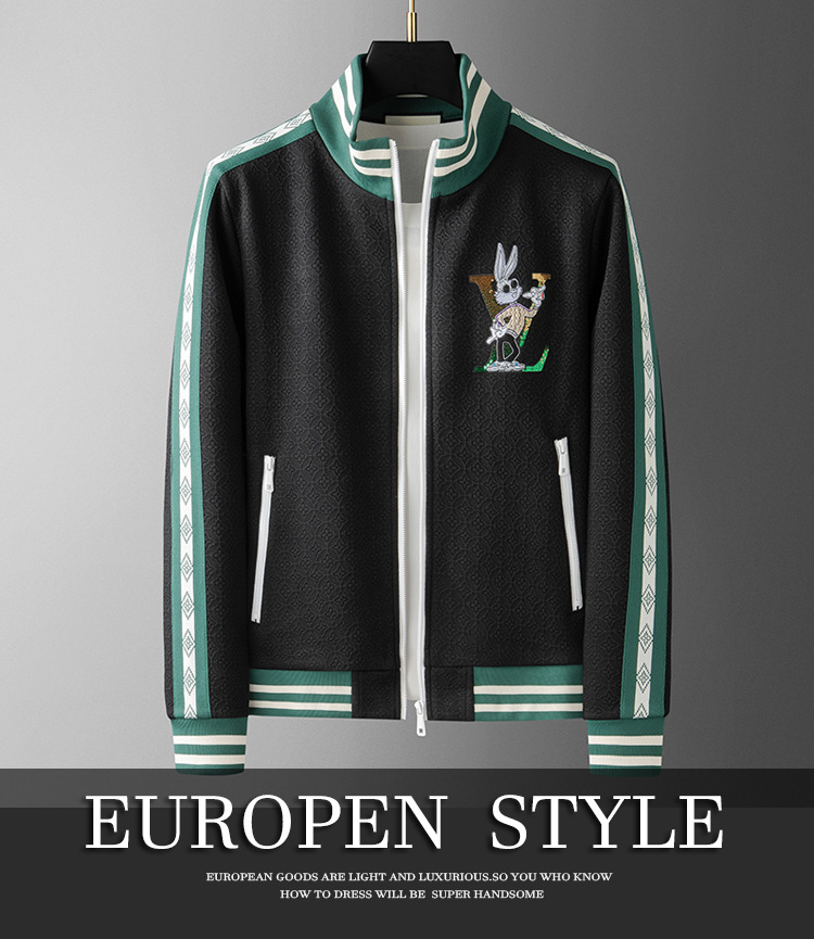 유럽 고급 자카드 캐주얼 재킷 남성 트렌디 브랜드 트렌드 2025 봄 가을 신작 남성 스탠드 칼라 카디건 스웨트 셔츠