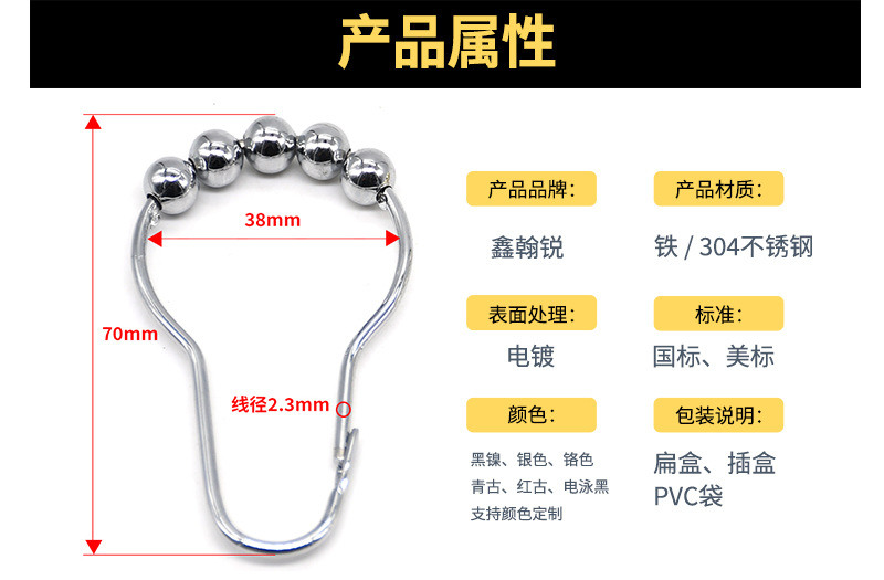 금속 방청 샤워 커튼 후크 부드러운 5 볼 호이스트 링 침실 침묵 커튼 링의 공장 대형 재고스토어 가기
