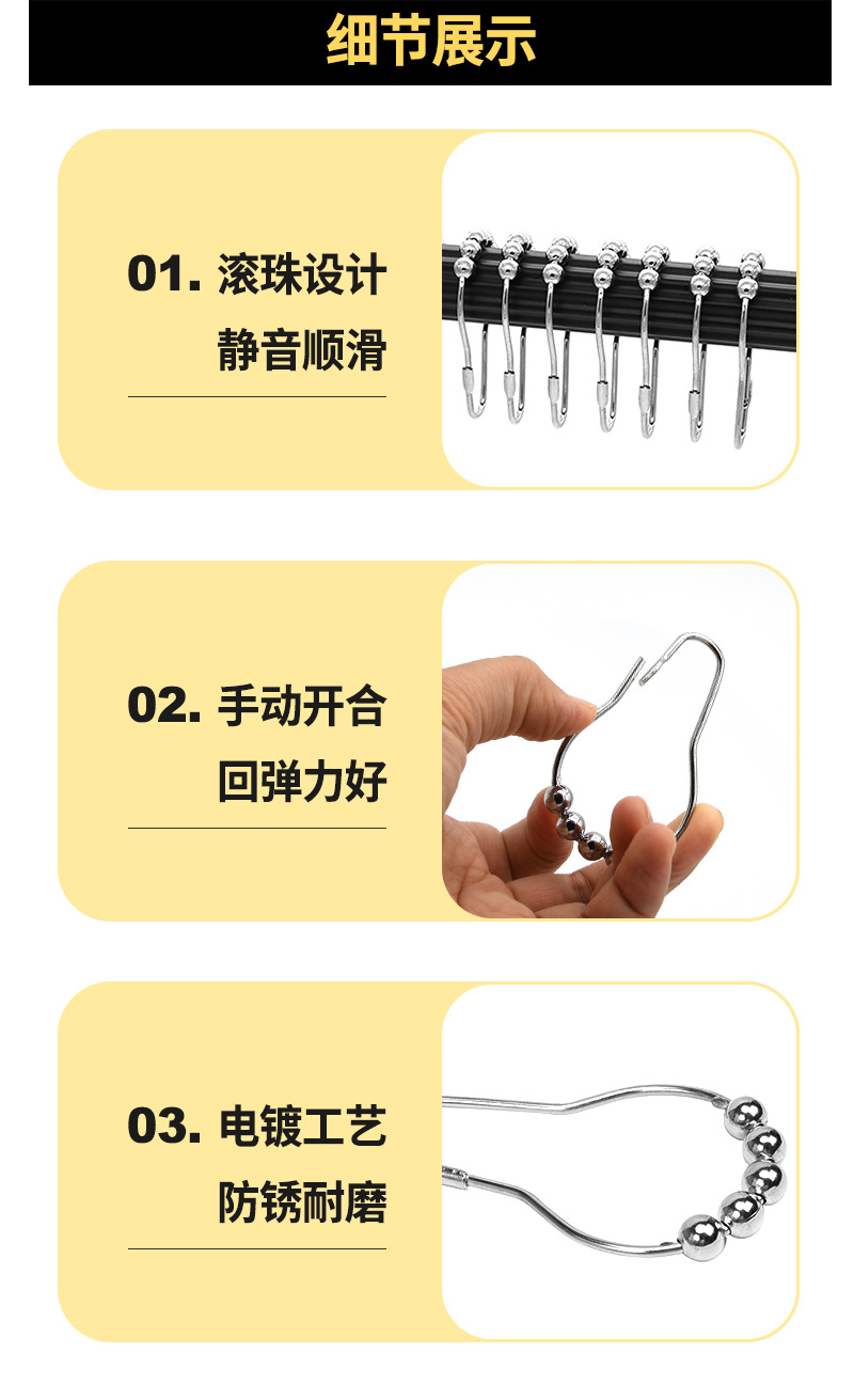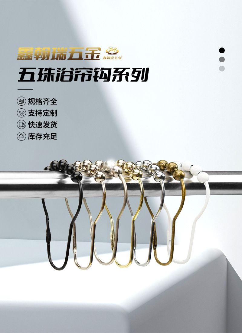 금속 방청 샤워 커튼 후크 부드러운 5 볼 호이스트 링 침실 침묵 커튼 링의 공장 대형 재고