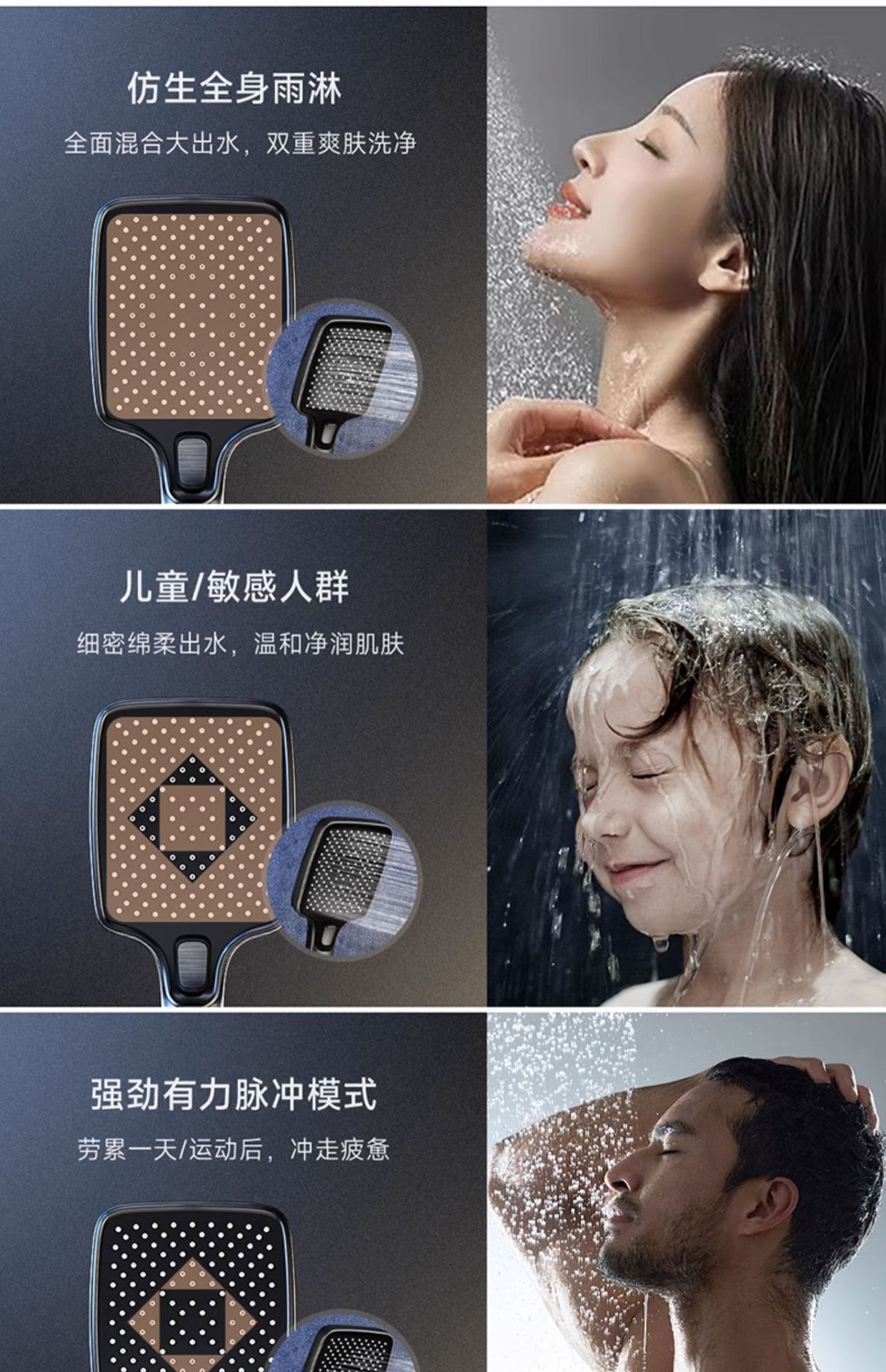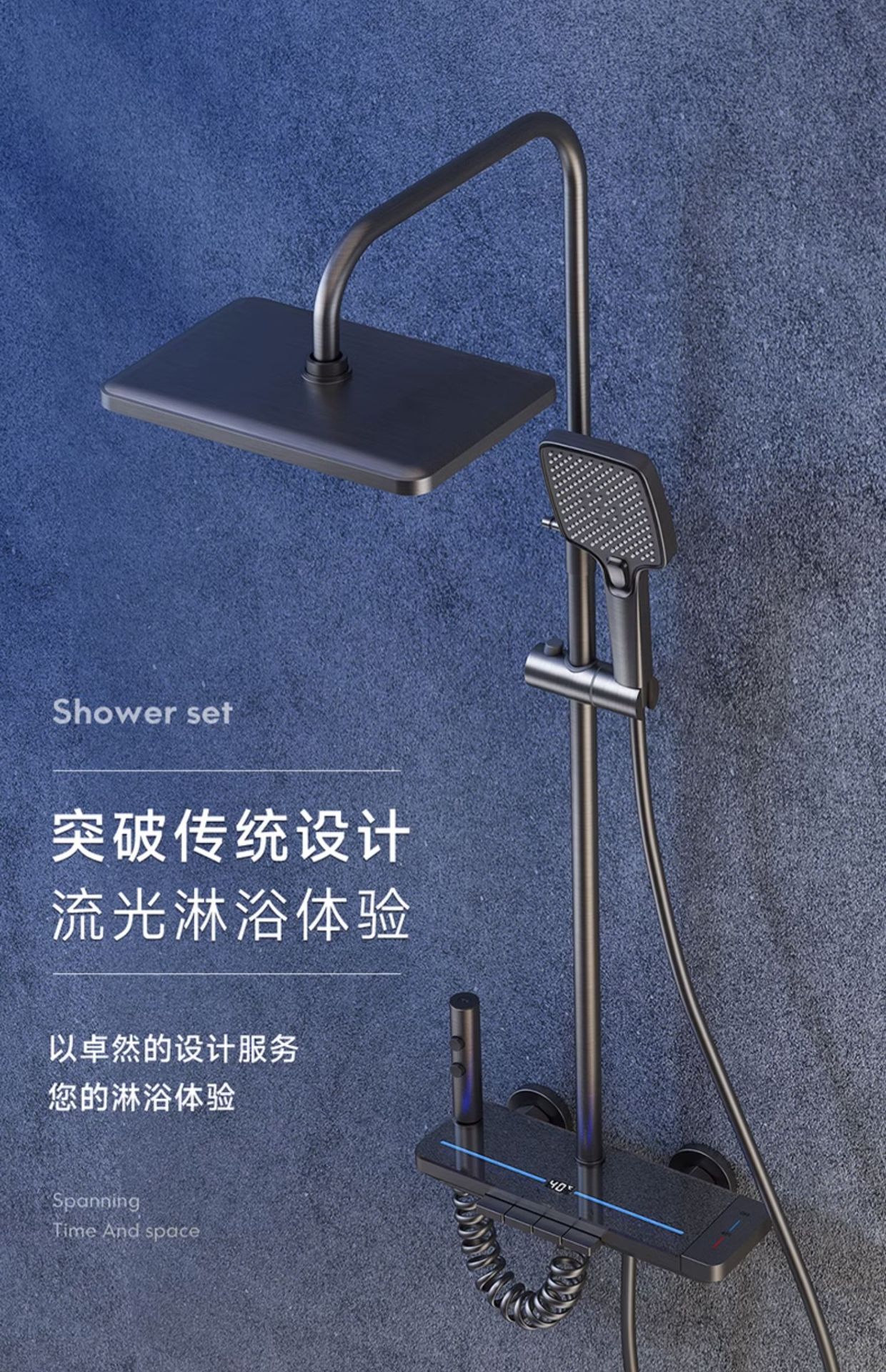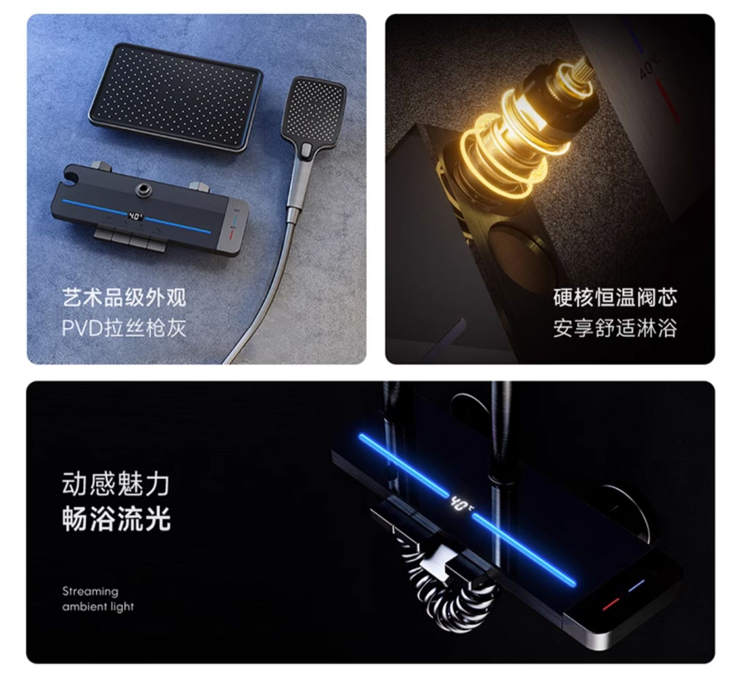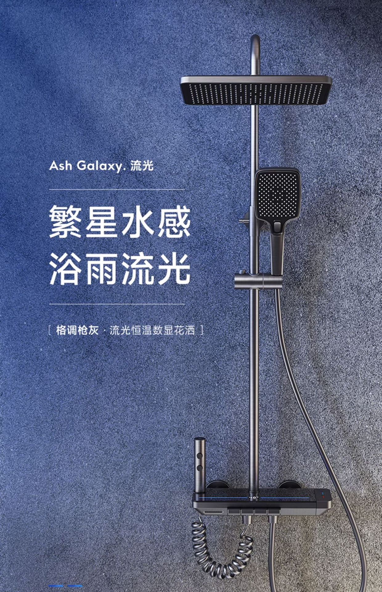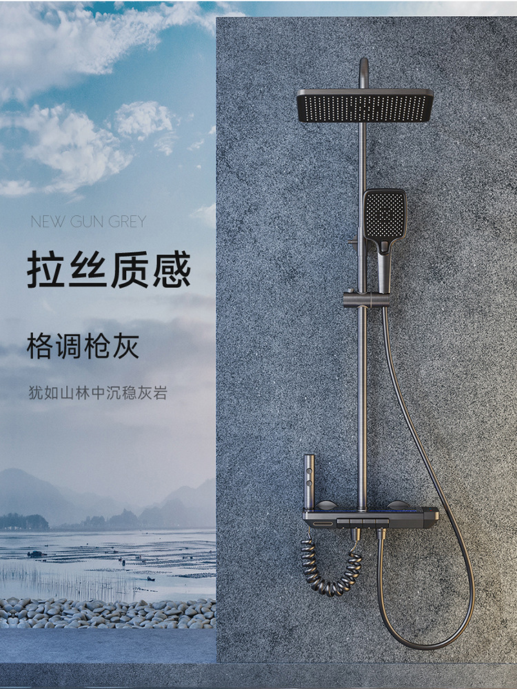 지능형 디지털 디스플레이 분위기 빛 일정한 온도 가압 샤워 세트 욕실 가정용 구리 욕실 빗속에서 목욕
