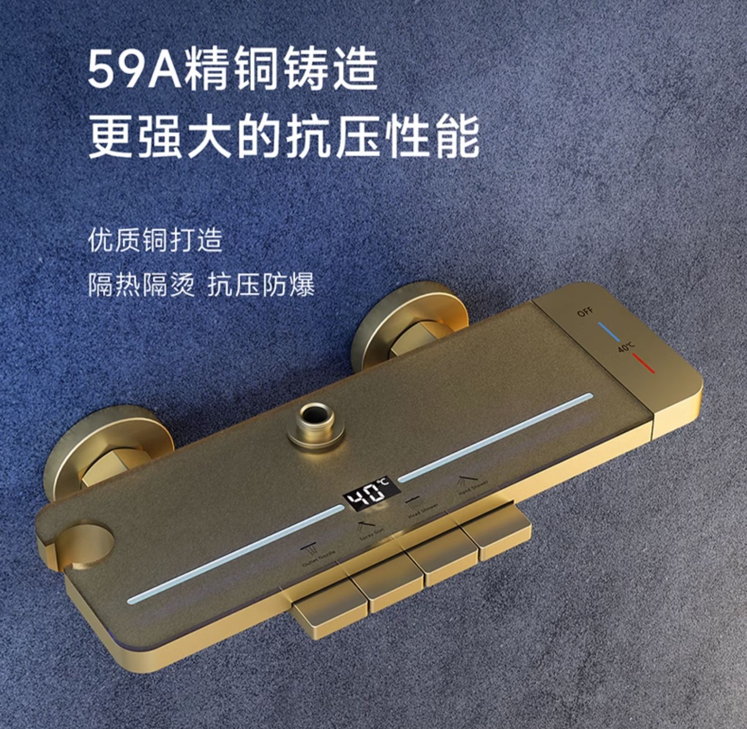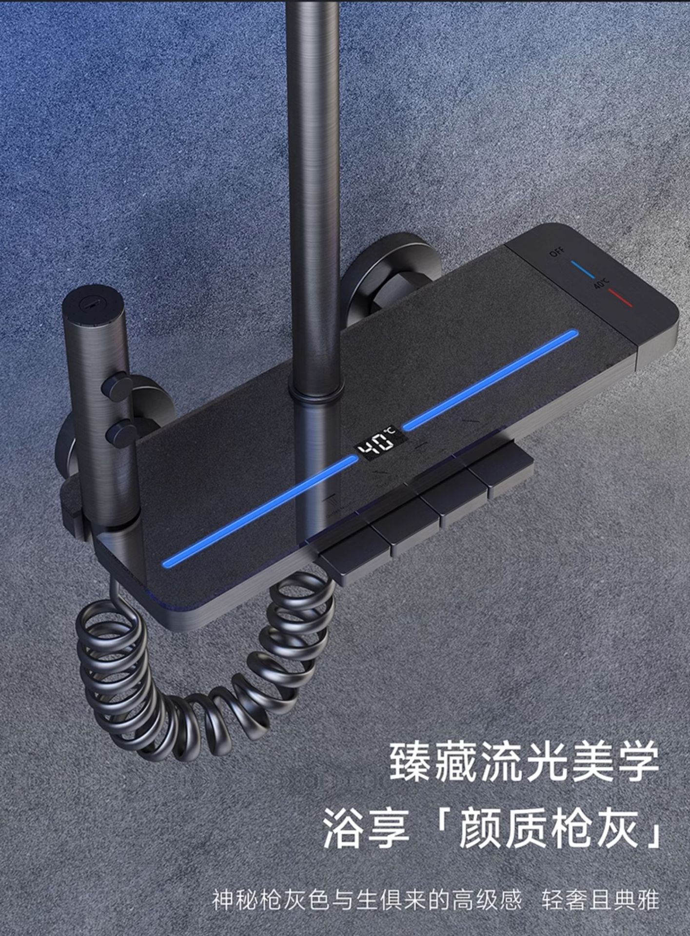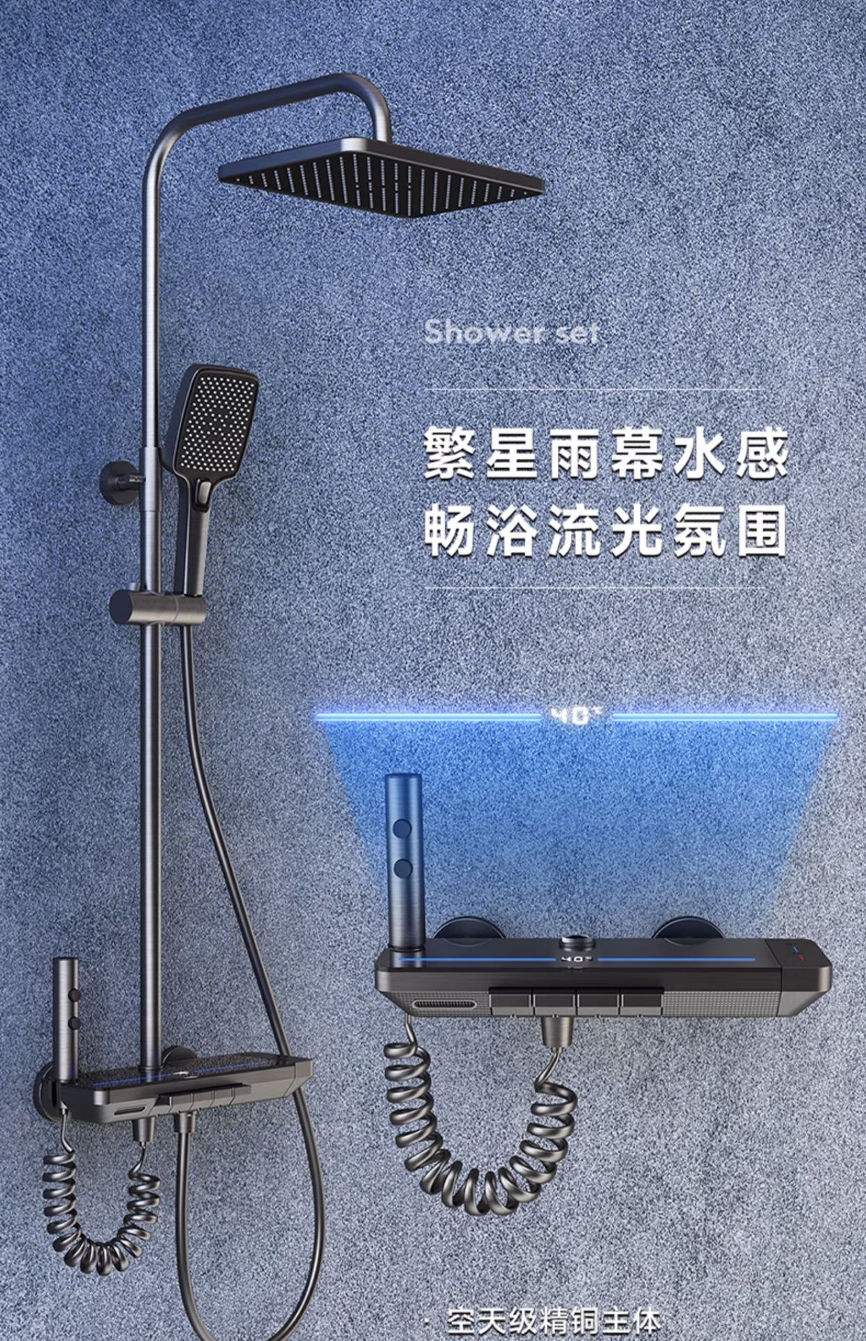 지능형 디지털 디스플레이 분위기 빛 일정한 온도 가압 샤워 세트 욕실 가정용 구리 욕실 빗속에서 목욕스토어 가기