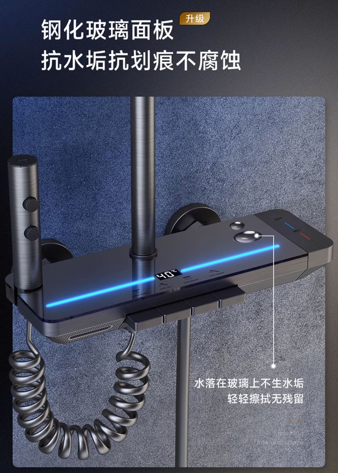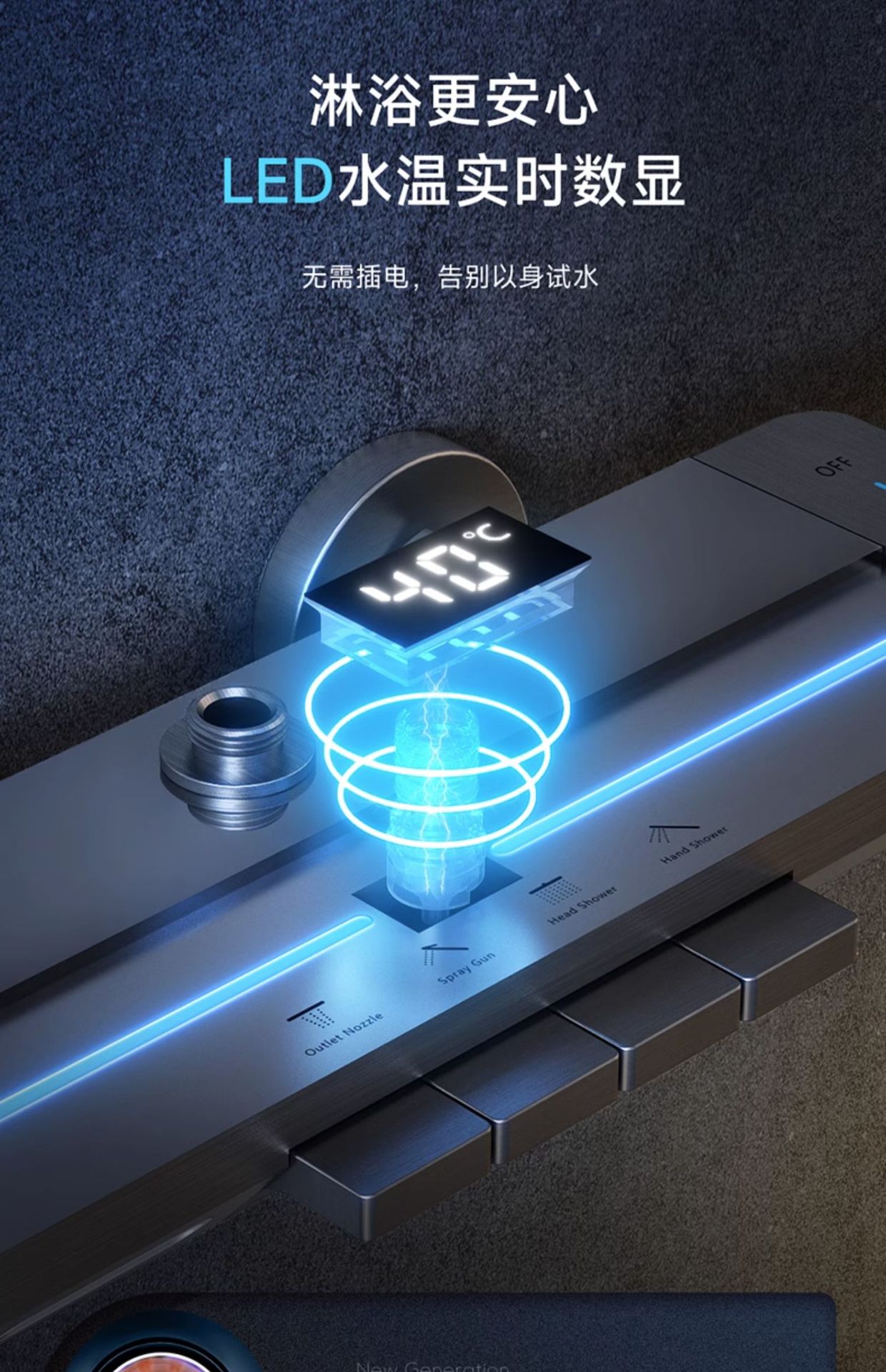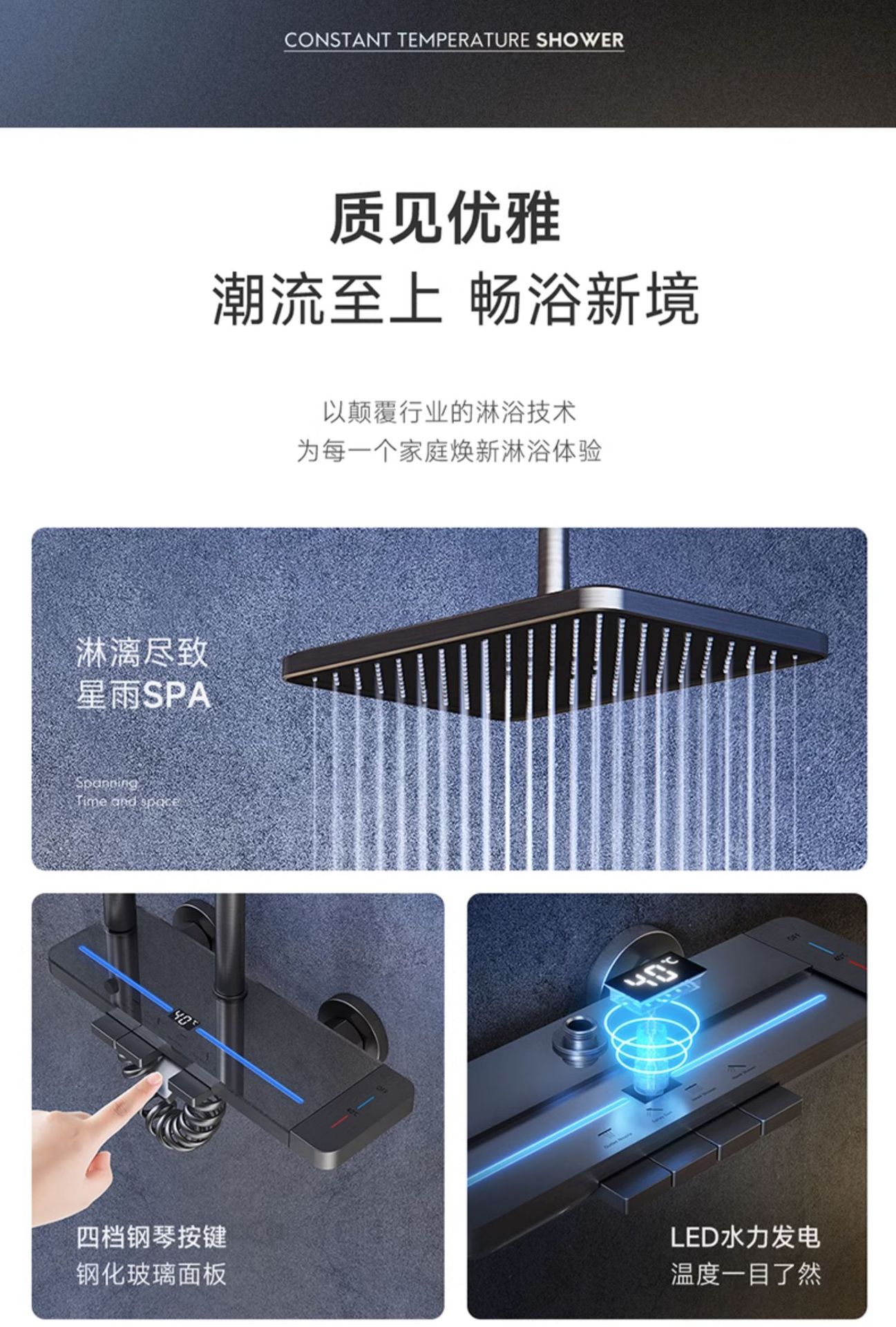 지능형 디지털 디스플레이 분위기 빛 일정한 온도 가압 샤워 세트 욕실 가정용 구리 욕실 빗속에서 목욕스토어 가기