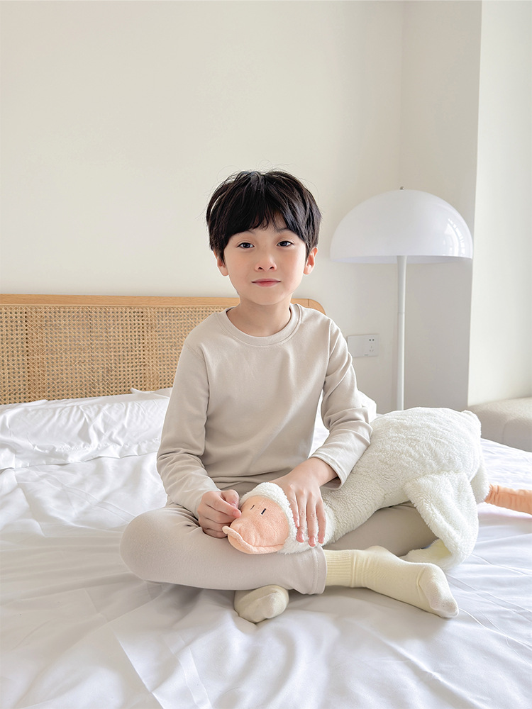 2024 년 어린이 280 그램의 세련된 면화 남성과 여성의 뼈없는 속옷 세트 홈 의류 가을 바지