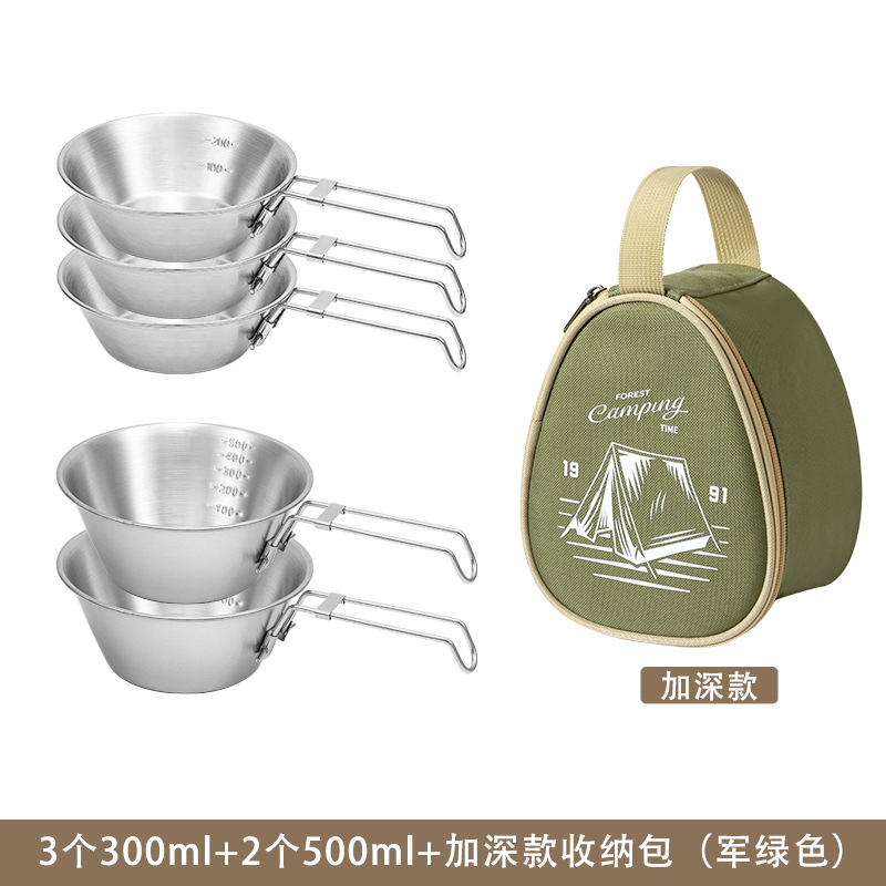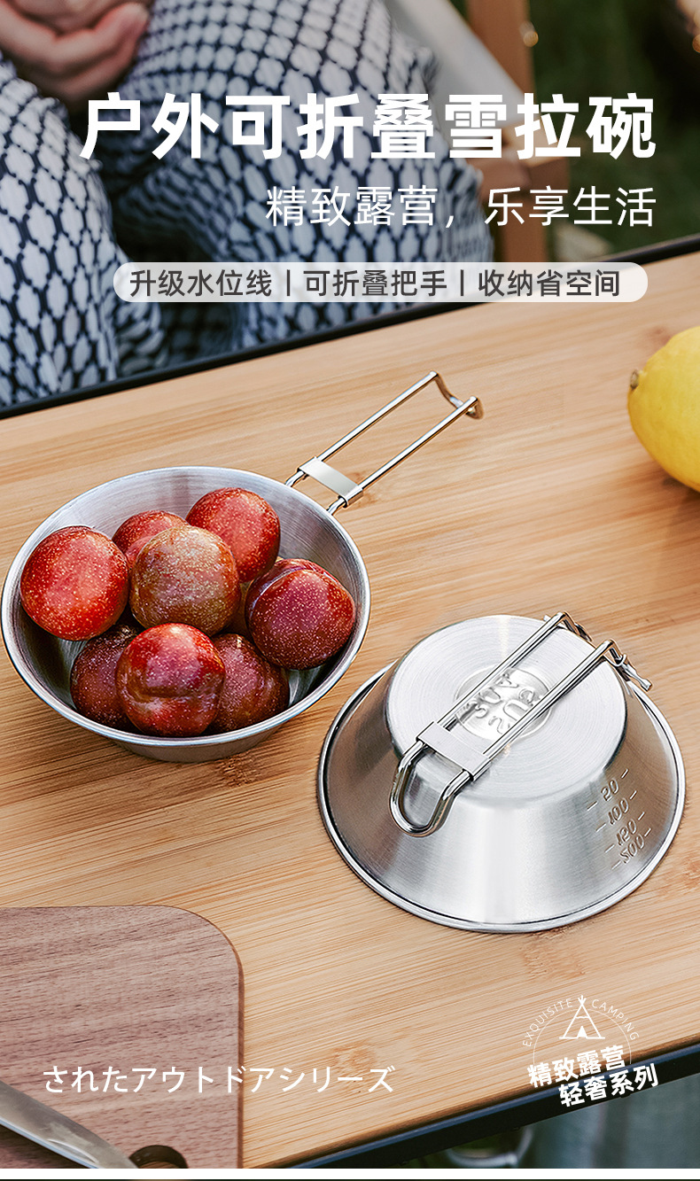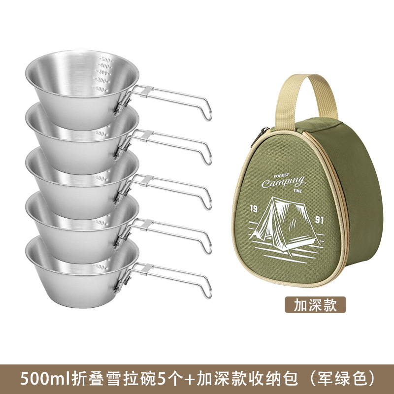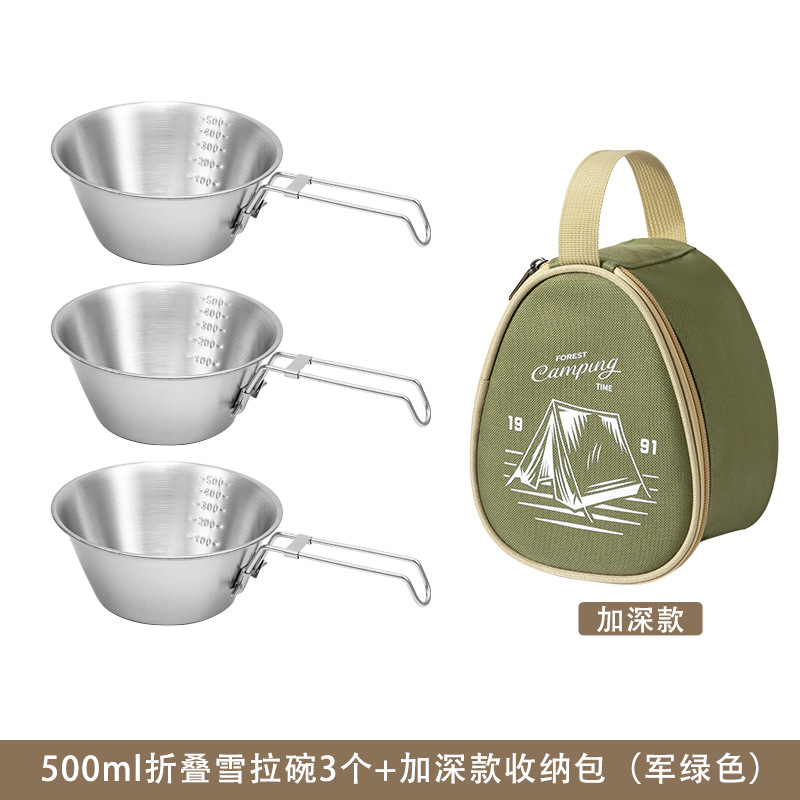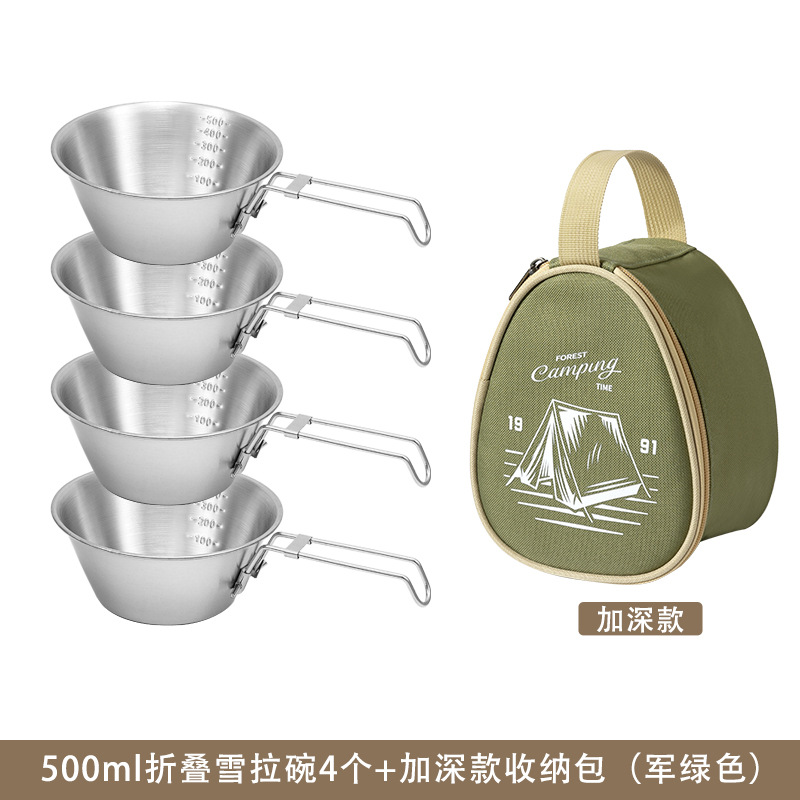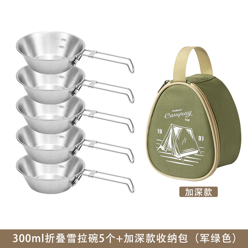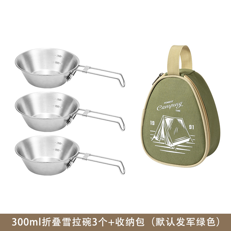 야외 스테인레스 스틸 스노우 보울 캠핑 그릇 피크닉 특수 304 접이식 식기 휴대용 그릇 및 젓가락 보관 세트스토어 가기