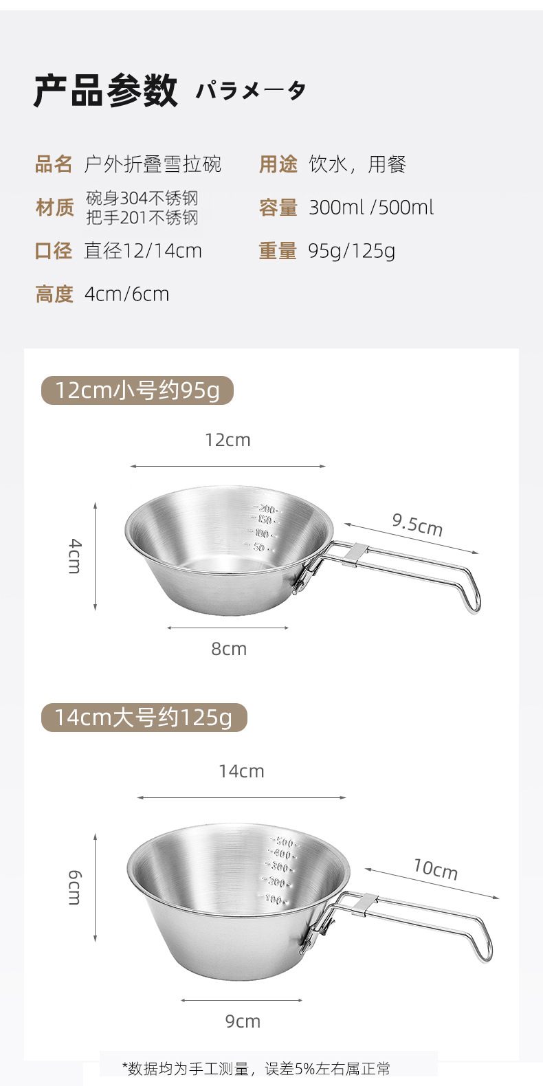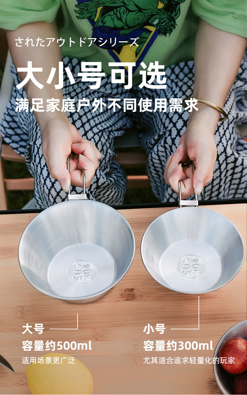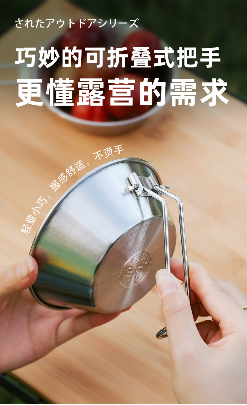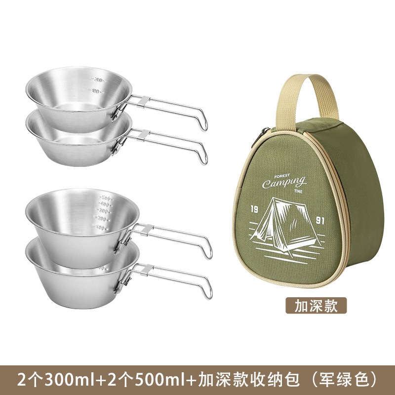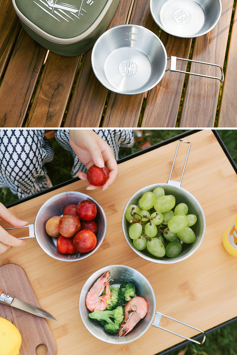 야외 스테인레스 스틸 스노우 보울 캠핑 그릇 피크닉 특수 304 접이식 식기 휴대용 그릇 및 젓가락 보관 세트스토어 가기