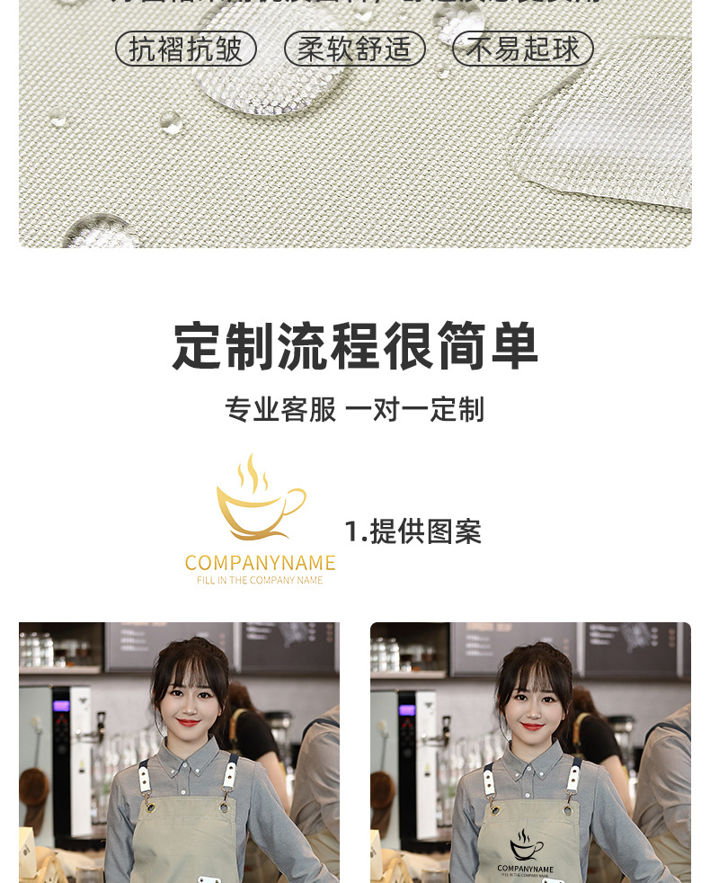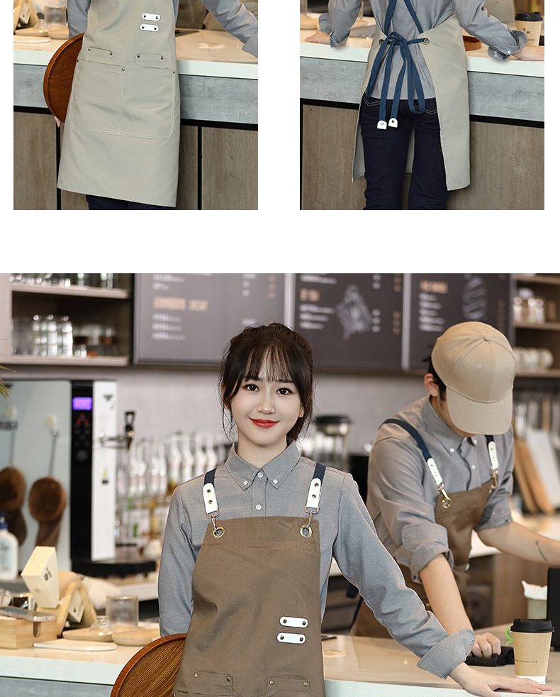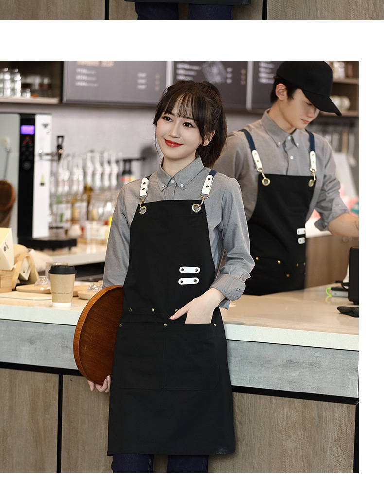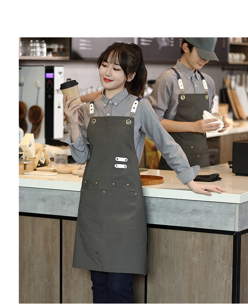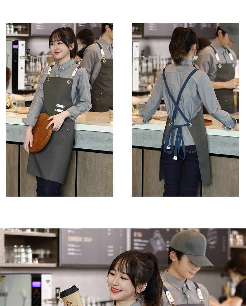 새로운 패션 캔버스 앞치마 취사 특별 우유 차 가게 커피 숍 튀김 끈 바지 허리 여성 인쇄 로고스토어 가기