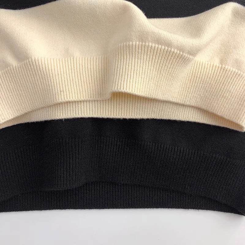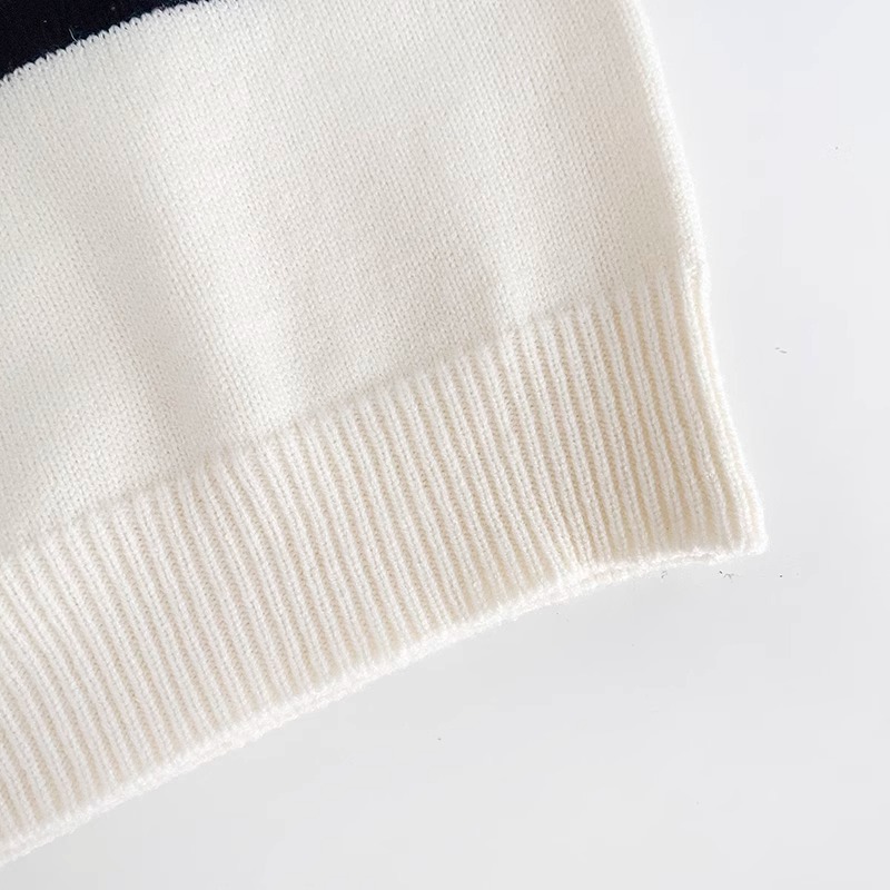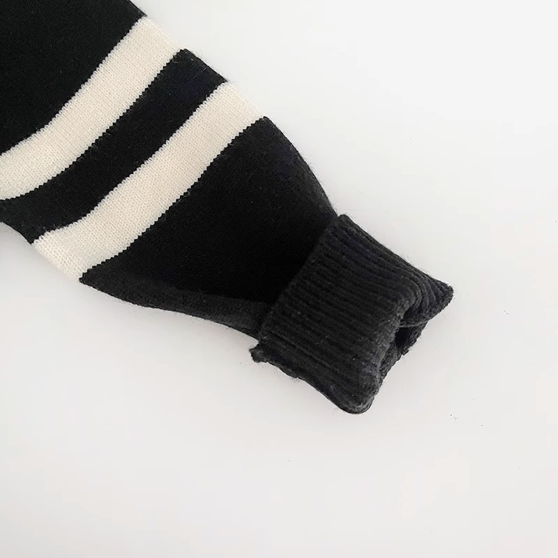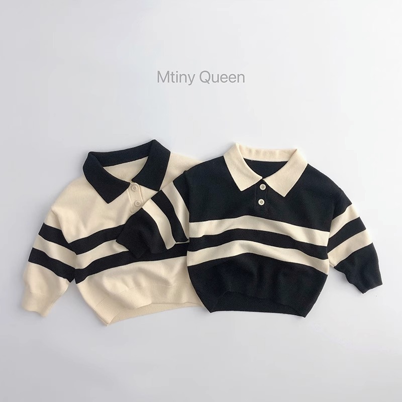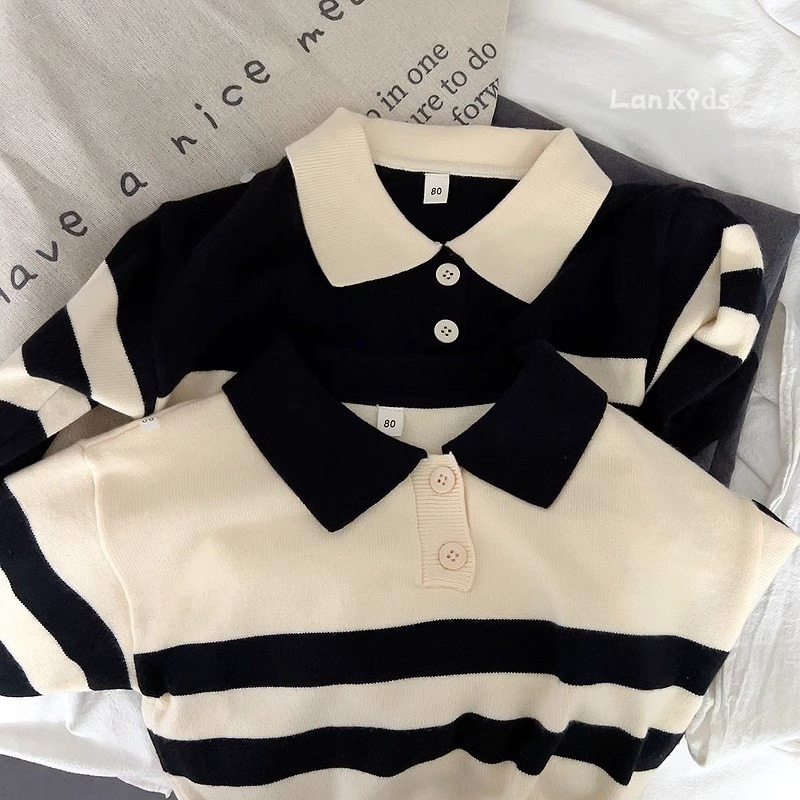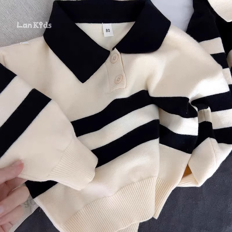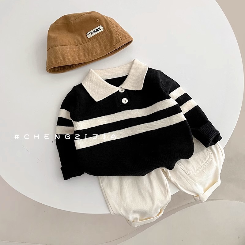 2023 새로운 한국어 버전 봄, 가을 어린이 스웨터 남성과 여성의 두 버튼 스트라이프 스웨터 느슨한 반팔 스타일스토어 가기