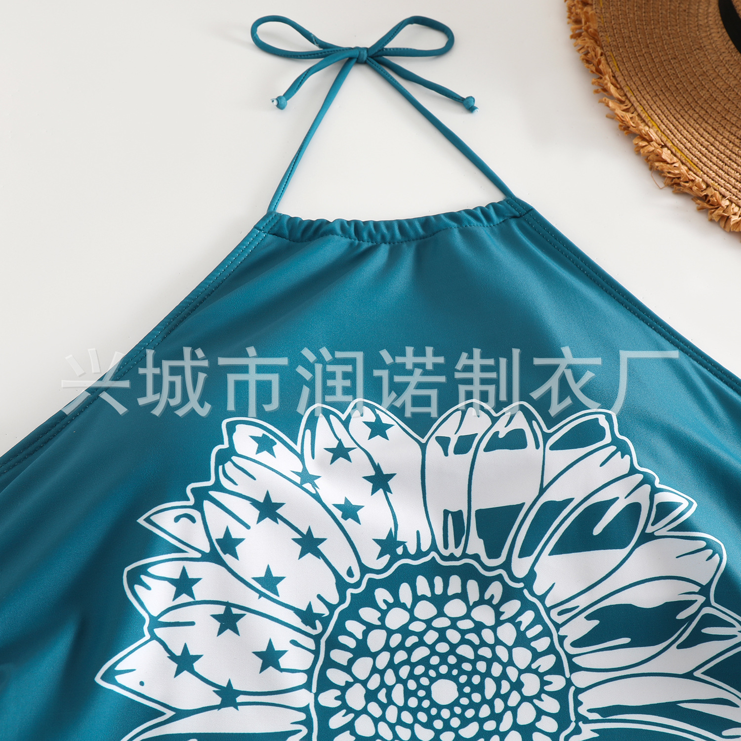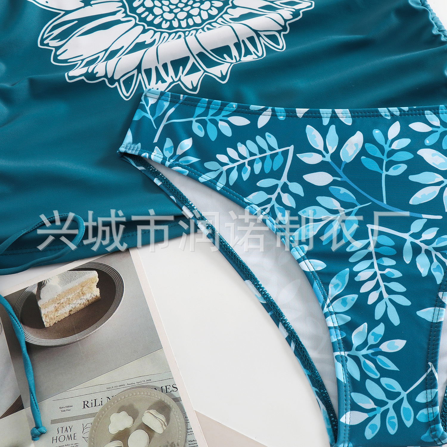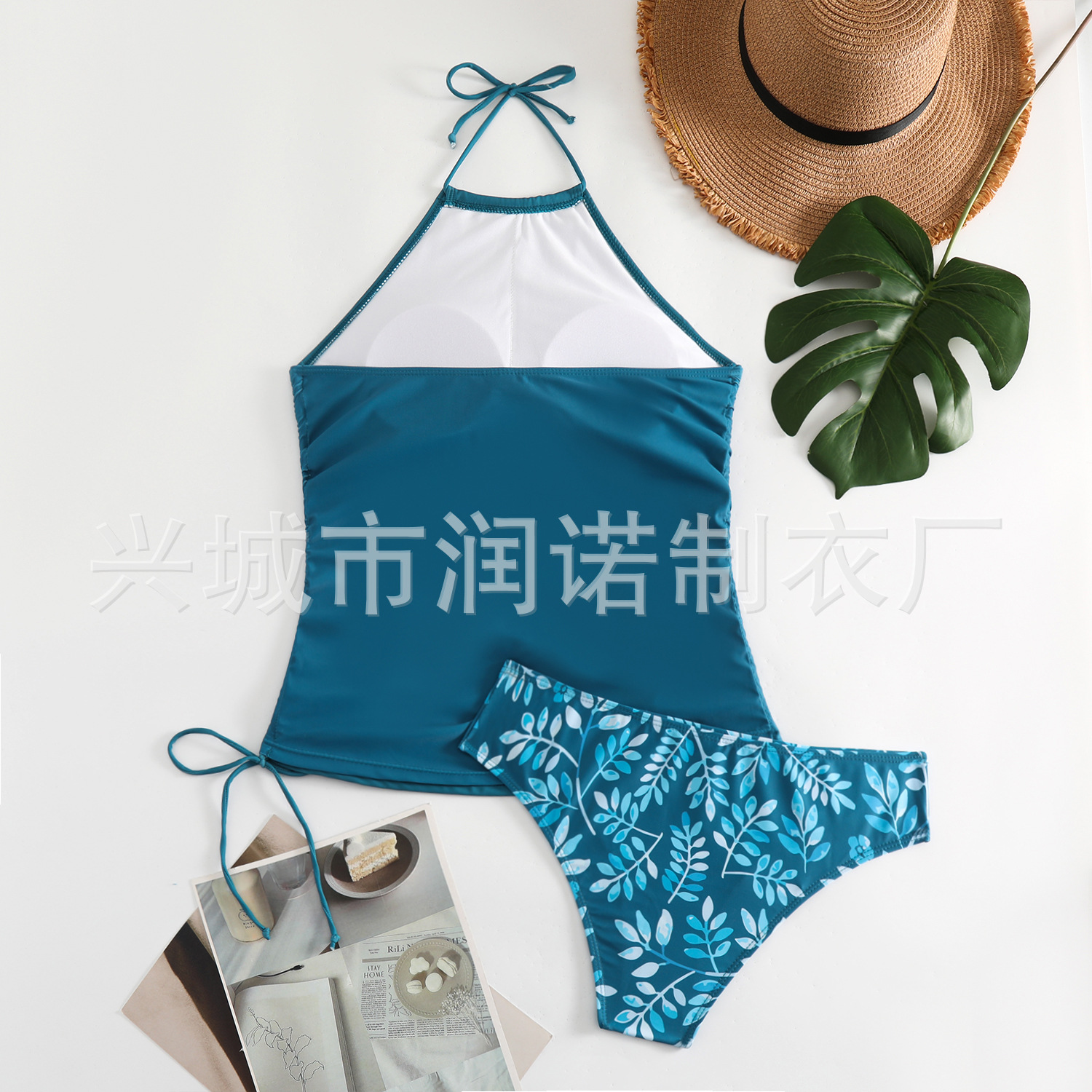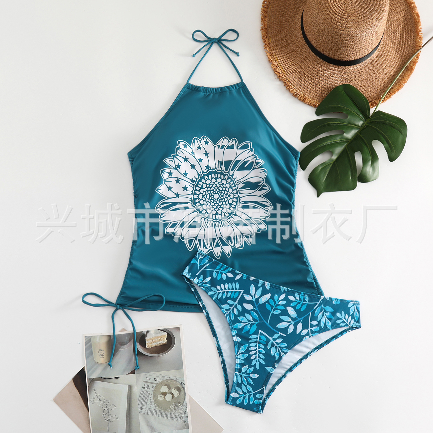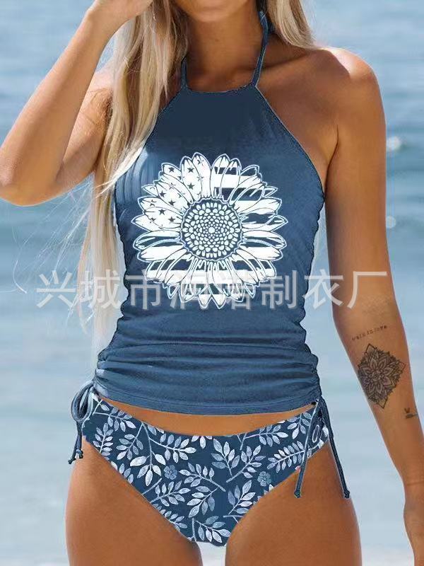 2023 유럽과 미국의 섹시한 코코넛 프린트 스트랩 수영복 여성용 보수적인 배 가리개 스플릿 비키니 유럽과 미국에서 인기