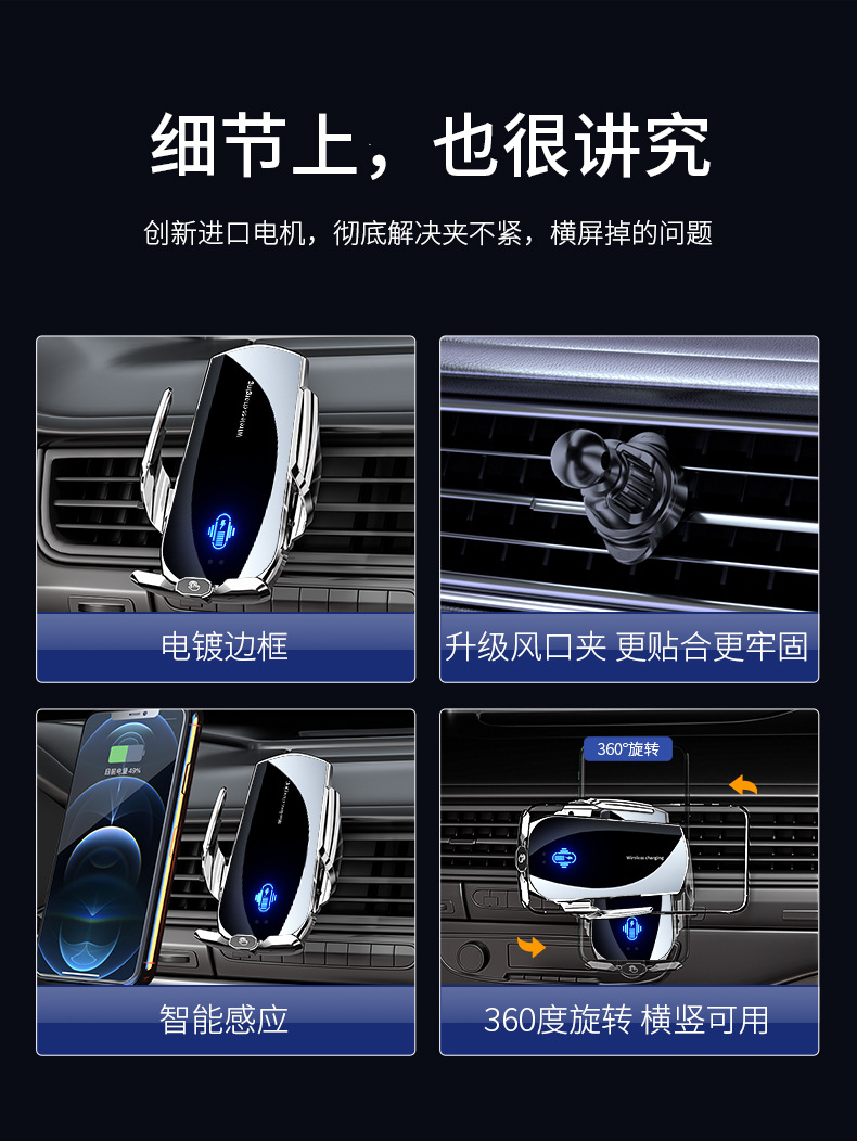 모직자이A2 스마트 자동차 휴대폰 무선 충전 거치대 차량용 에어벤트 자석 충전기 전기 클램프