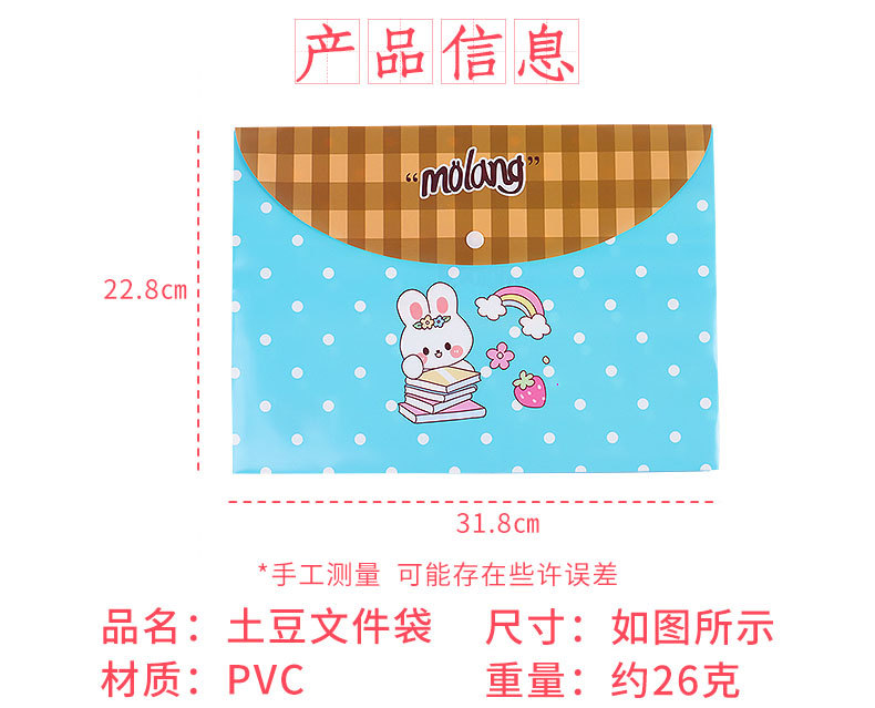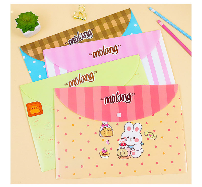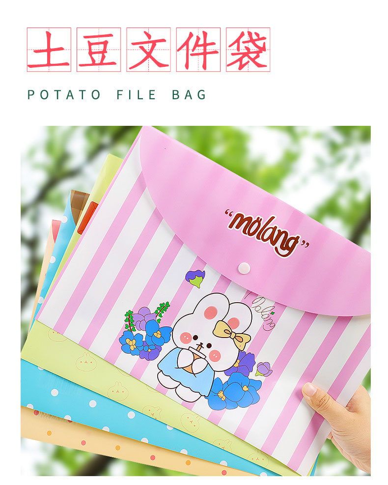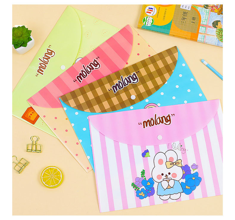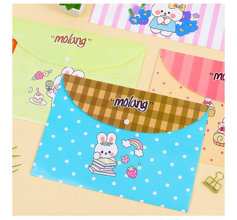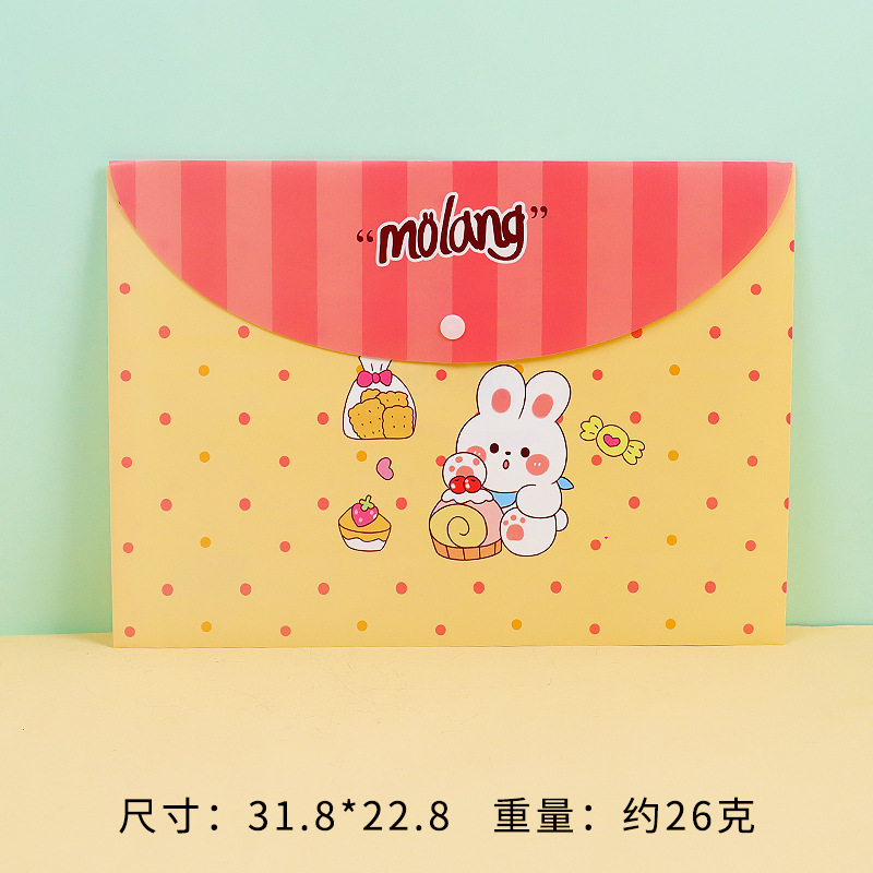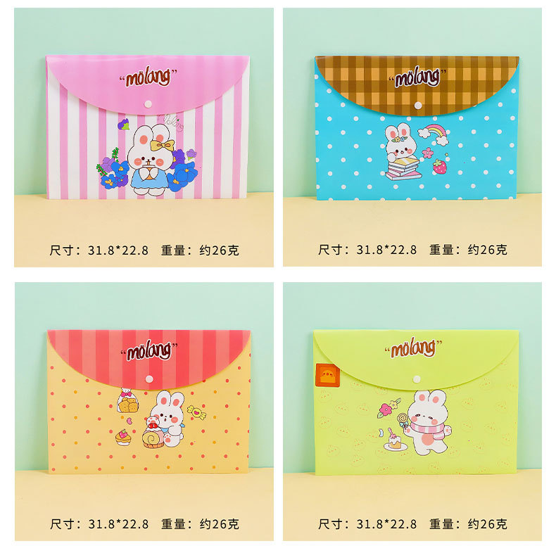 만화 A4 파일 가방 사랑스러운 토끼 스냅 버튼 보관 가방 학생 파일 가방 시험 종이 파일 보관 가방 사무실 정보 가방