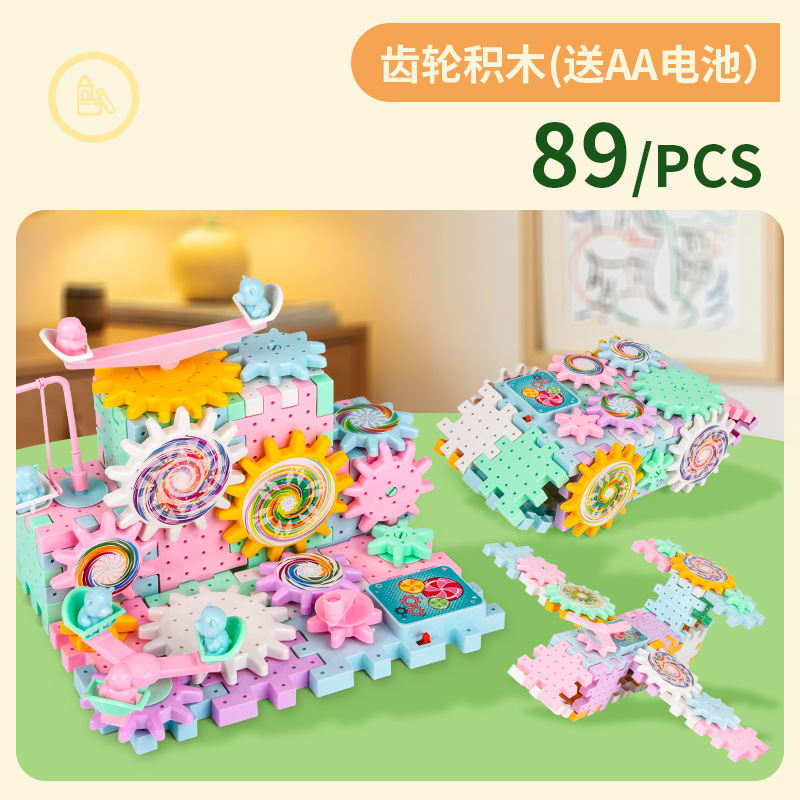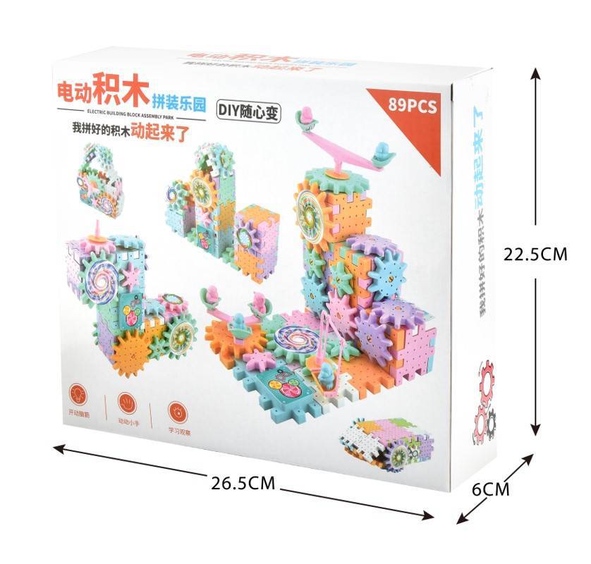 • 기어 빌딩 블록 89 장 세트 {모터 포함 * 1} 통판 상자