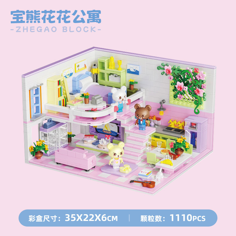 레고 미니 하우스와 호환되는 Zhegao 빌딩 블록 소녀를위한 교육용 조립 장난감 조립 선물 2 층 아파트