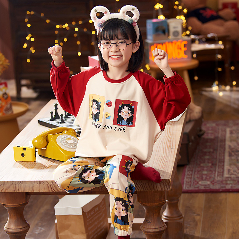 2025년 신상 아동 잠옷 순면 긴팔 여아용 치비마루코짱 중대형 아동 여아용 부모-자녀룩 엄마-딸룩스토어 가기