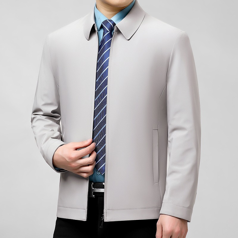 카운터 뽕나무 실크 남성 자켓 2023 가을과 겨울 느슨한 옷깃 중년 및 노인 공무원 남성 코트 도매