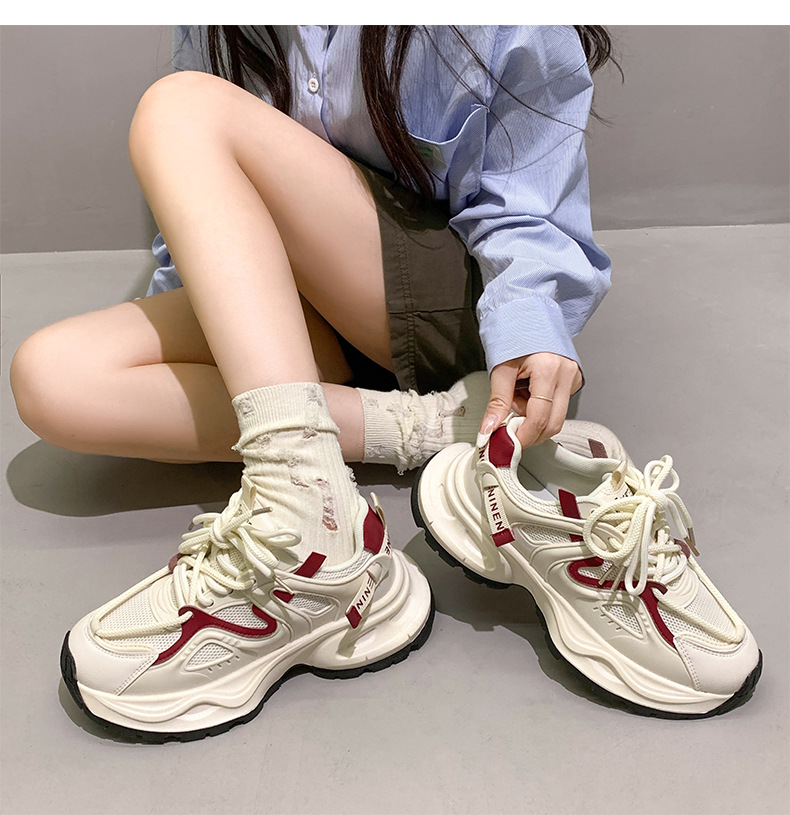 두꺼운 밑창, 미끄럼 방지, 메쉬 소재, 레트로 스타일, 다용도 여성용 운동화, 2025년 신상 여름 모델, 발을 더 작아 보이게 하는 데디슈즈, 트렌디 브랜드, 로우탑스토어 가기