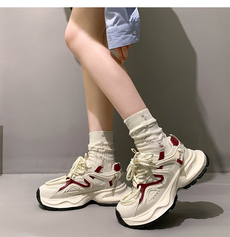 두꺼운 밑창, 미끄럼 방지, 메쉬 소재, 레트로 스타일, 다용도 여성용 운동화, 2025년 신상 여름 모델, 발을 더 작아 보이게 하는 데디슈즈, 트렌디 브랜드, 로우탑
