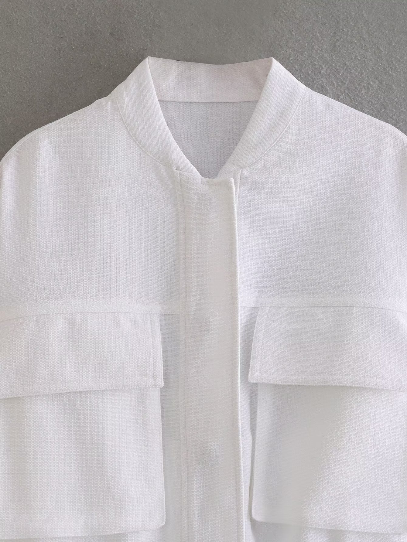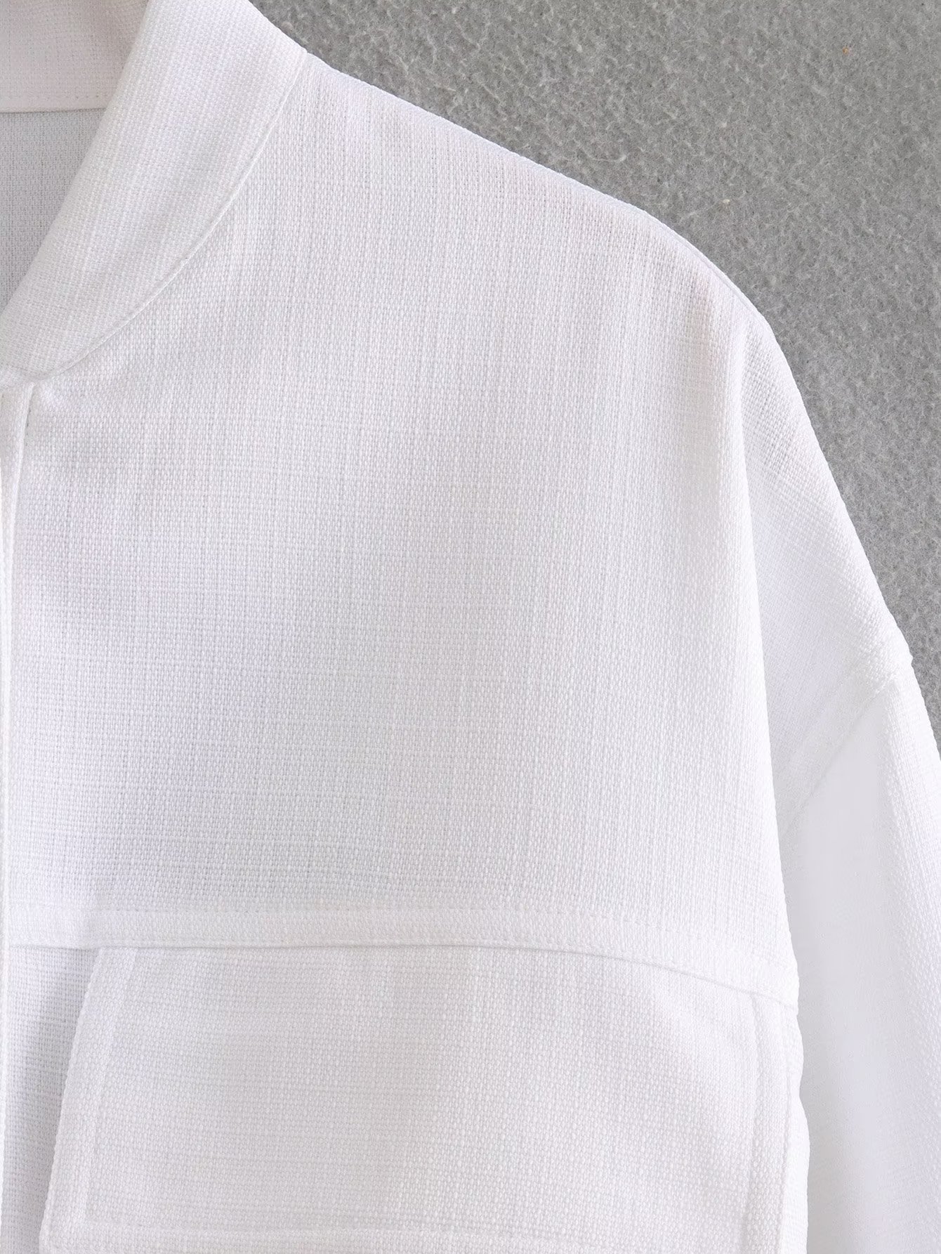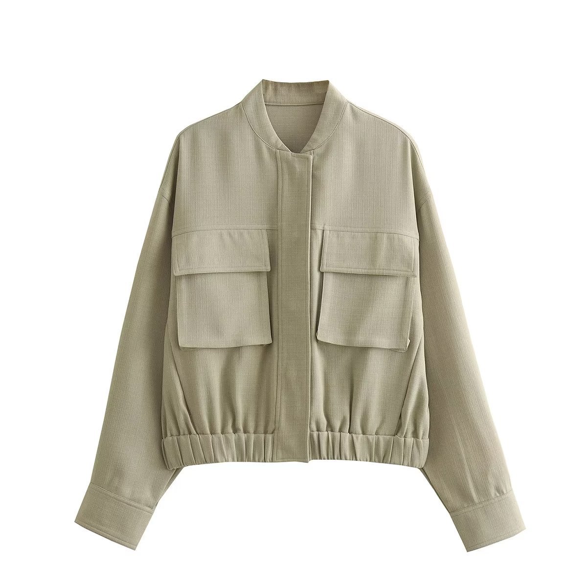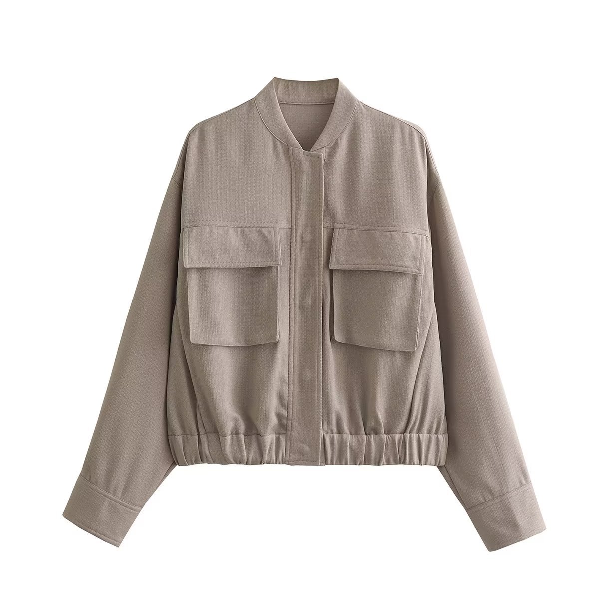 대외 무역 여성 의류 유럽 및 미국 스타일 2023 가을 새로운 5 색 면 및 린넨 혼방 포켓 재킷 야구 코트스토어 가기