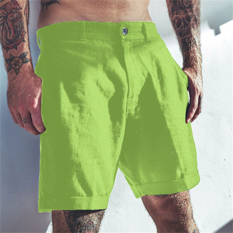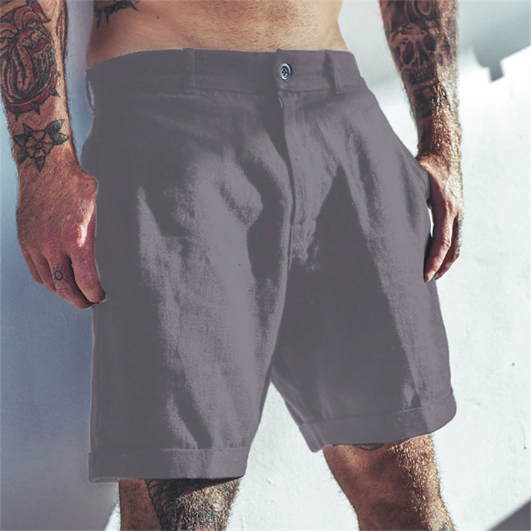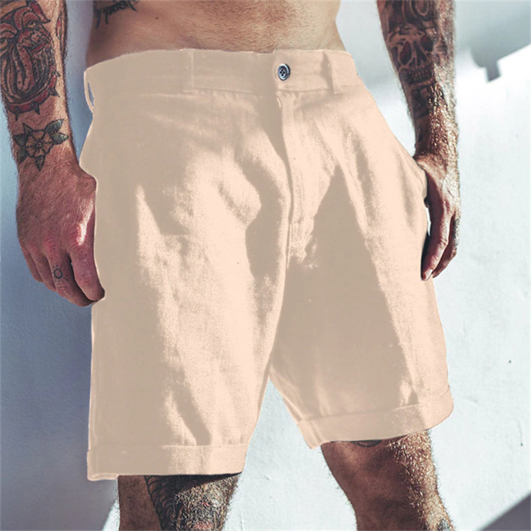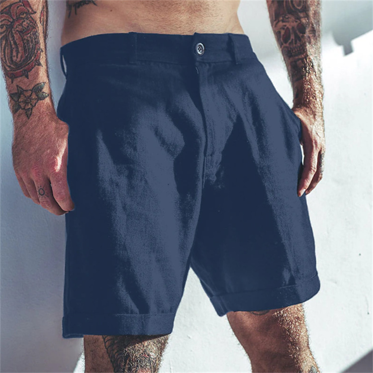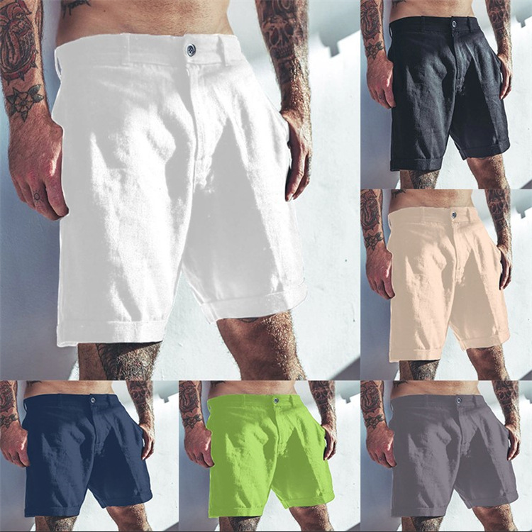 남성용 코튼 린넨 여름 비치 반바지 포켓 단색 편안한 통기성 반바지스토어 가기