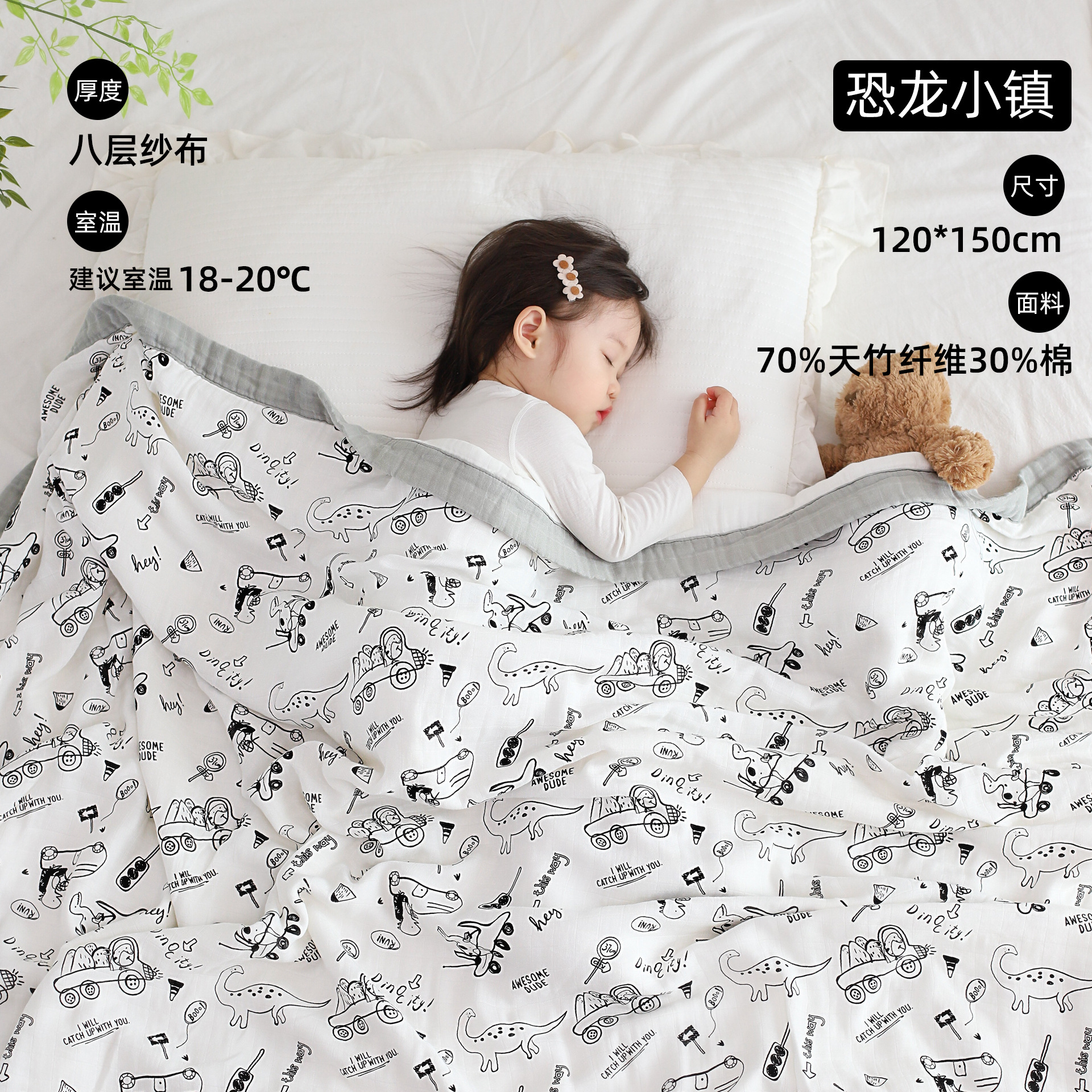 • 공룡 타운 대나무 면 8 층 거즈 커버