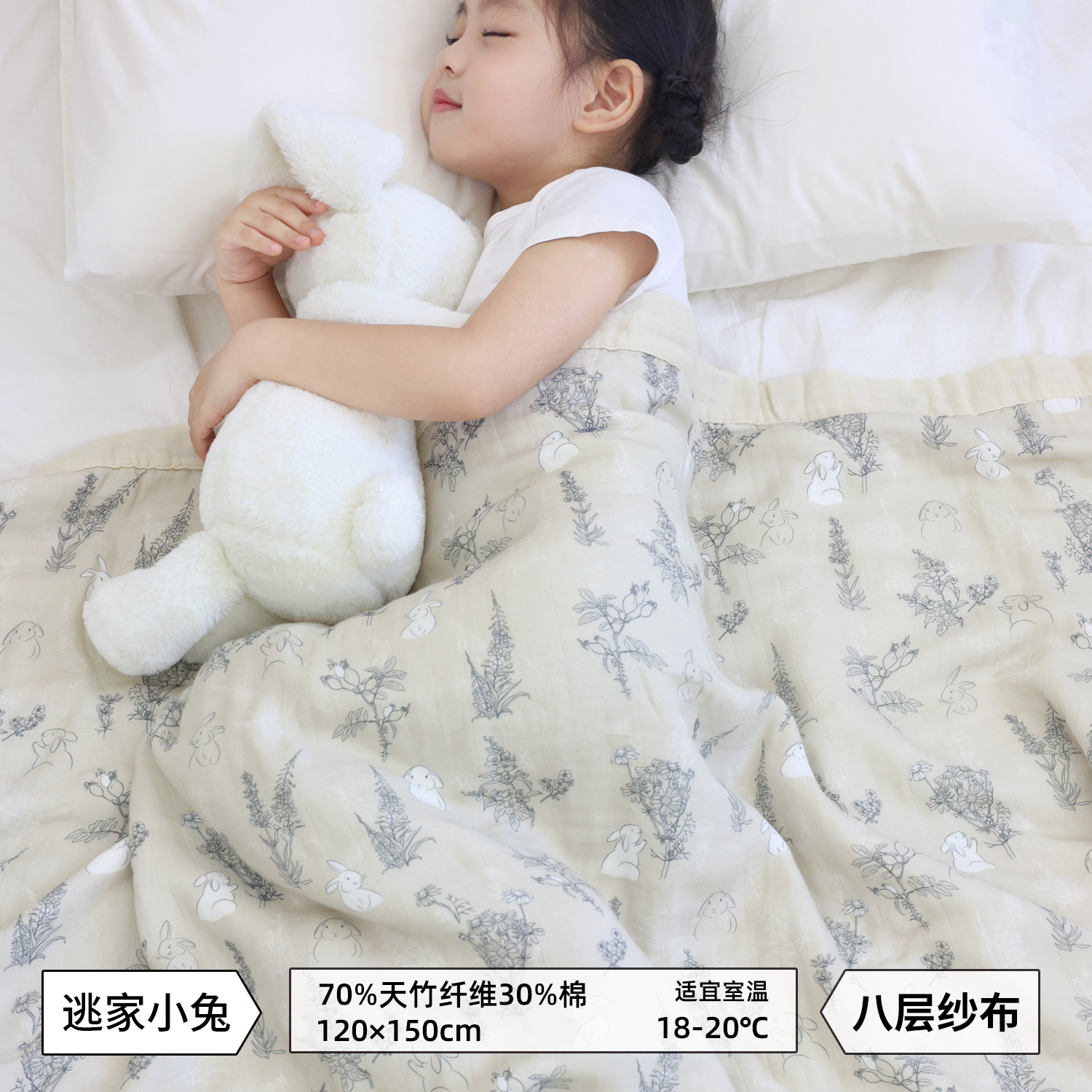 • 탈출 토끼 대나무 면 8겹 거즈 담요