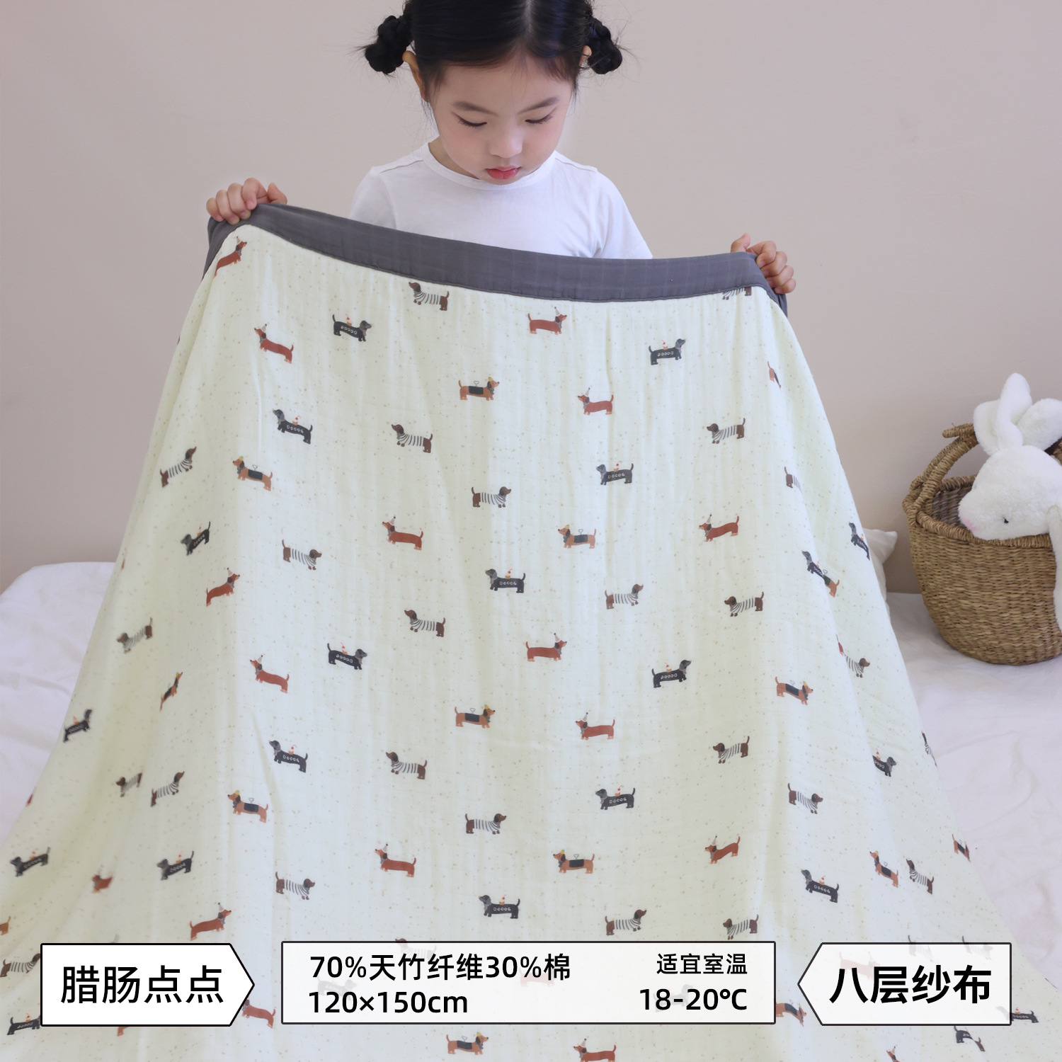 • 닥스훈트 도트 대나무 면 8겹 거즈 이불