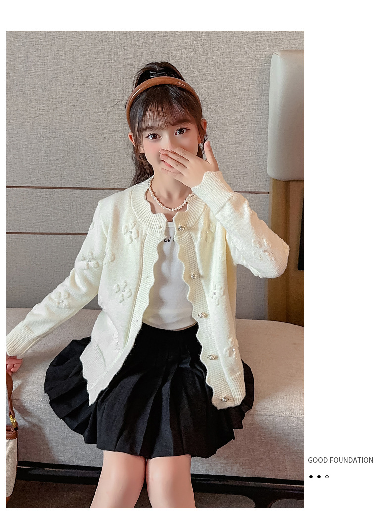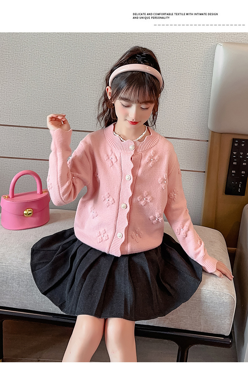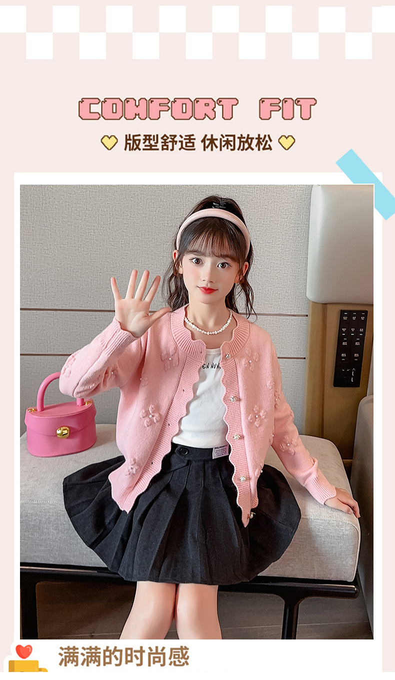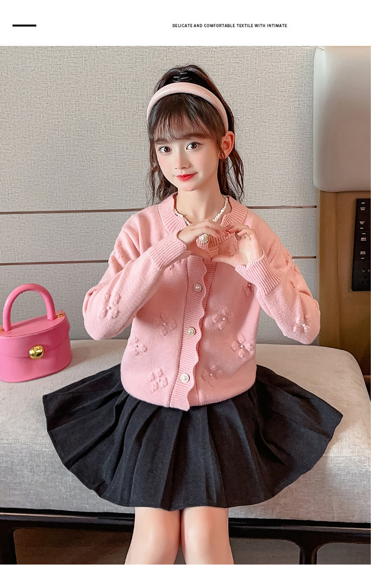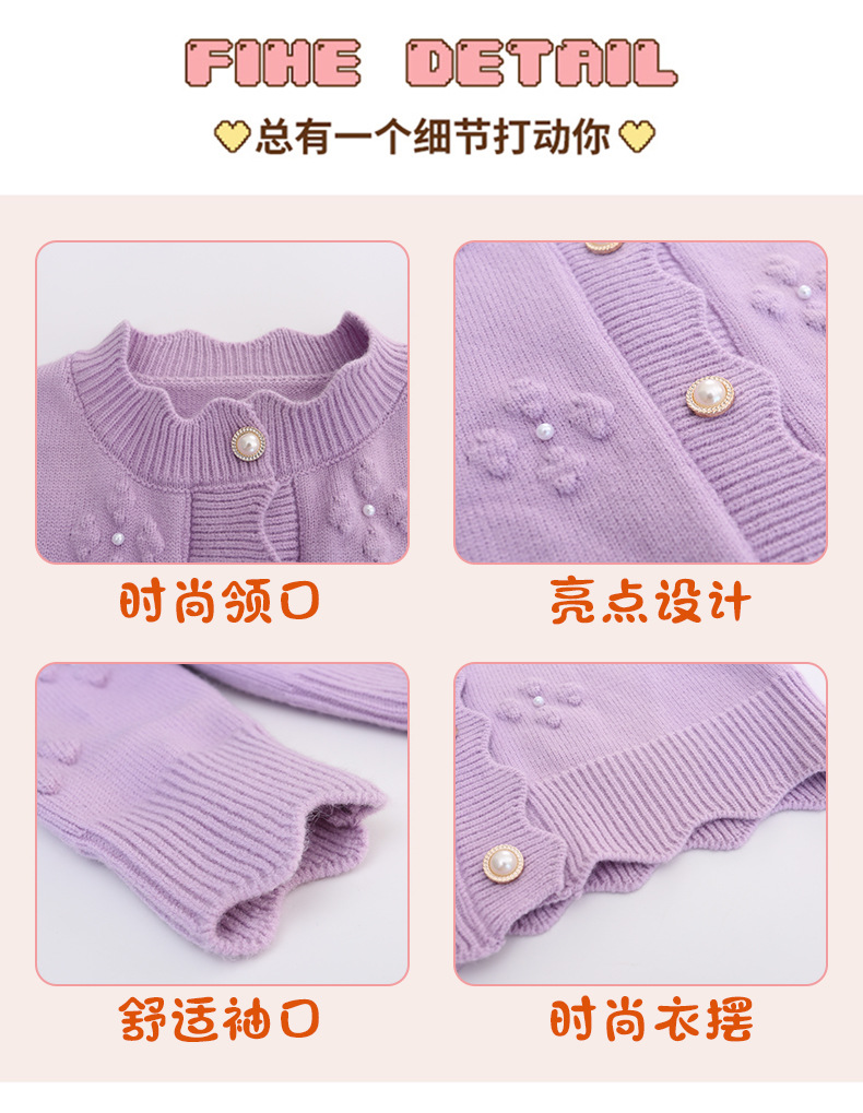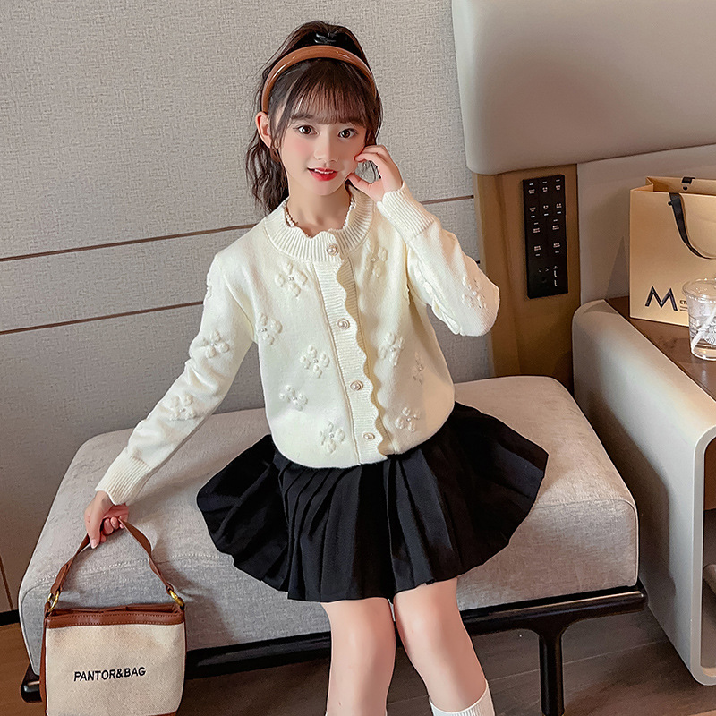 여아 니트 가디건 봄과 가을 2023 새로운 어린이 스웨터 코트 세련된 세련된 라운드 넥 스웨터