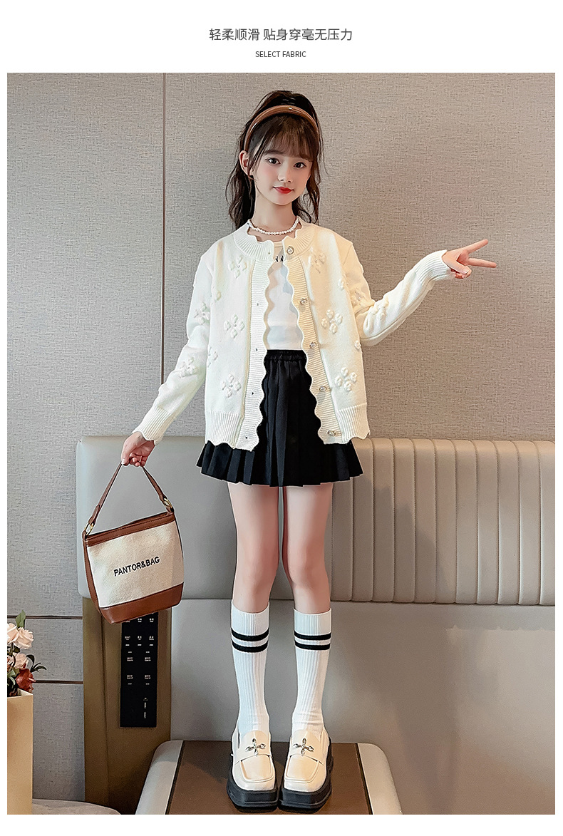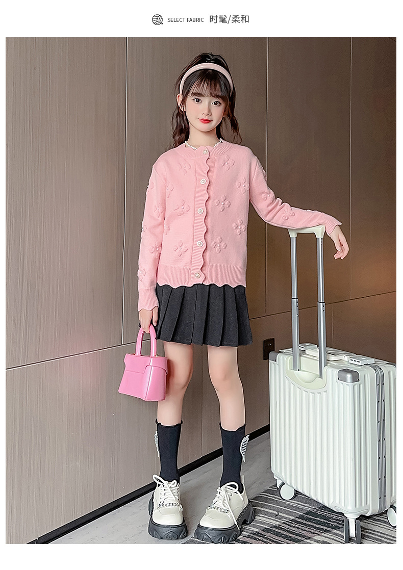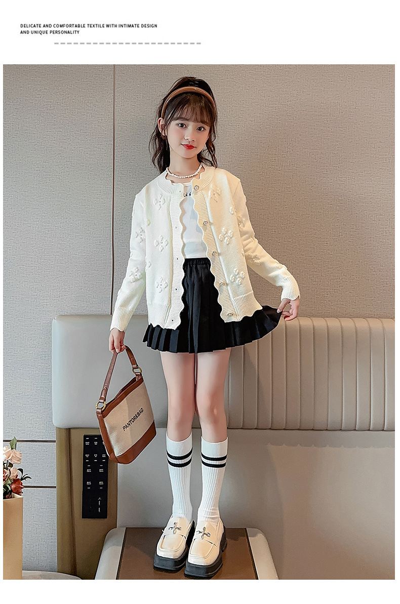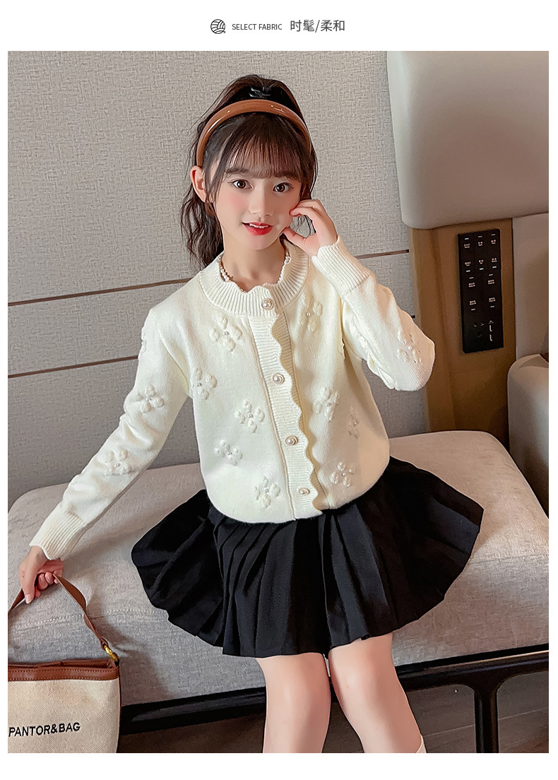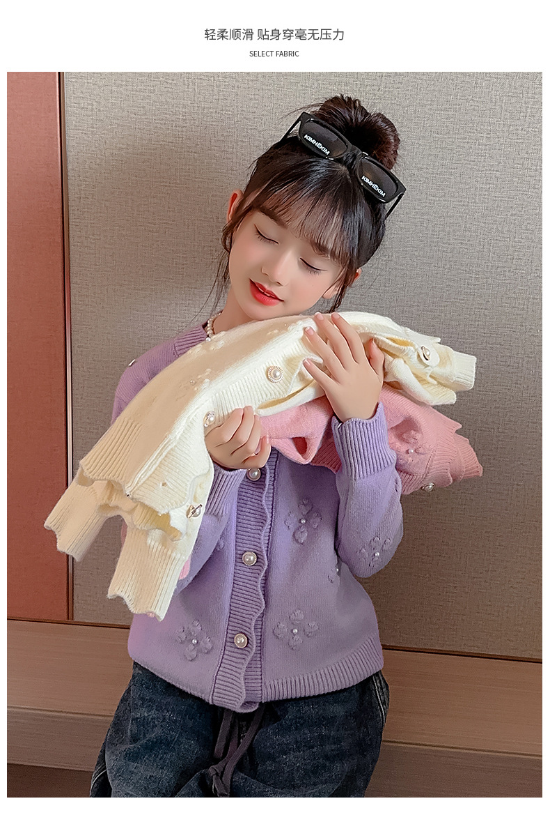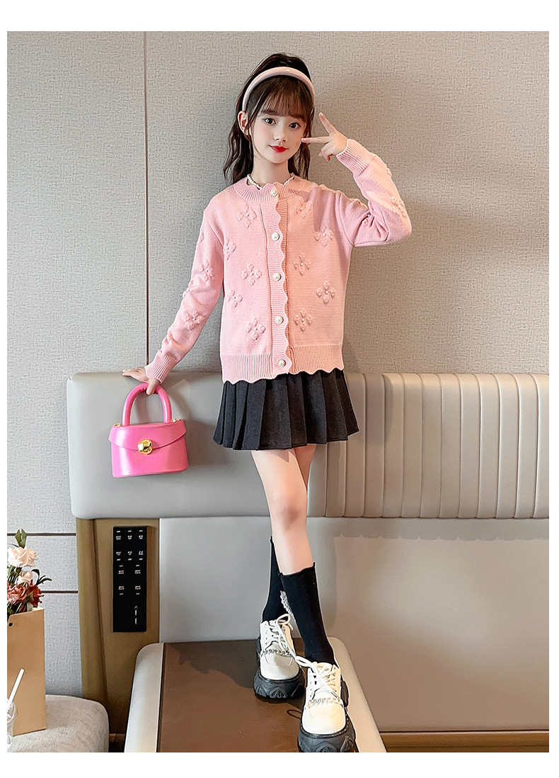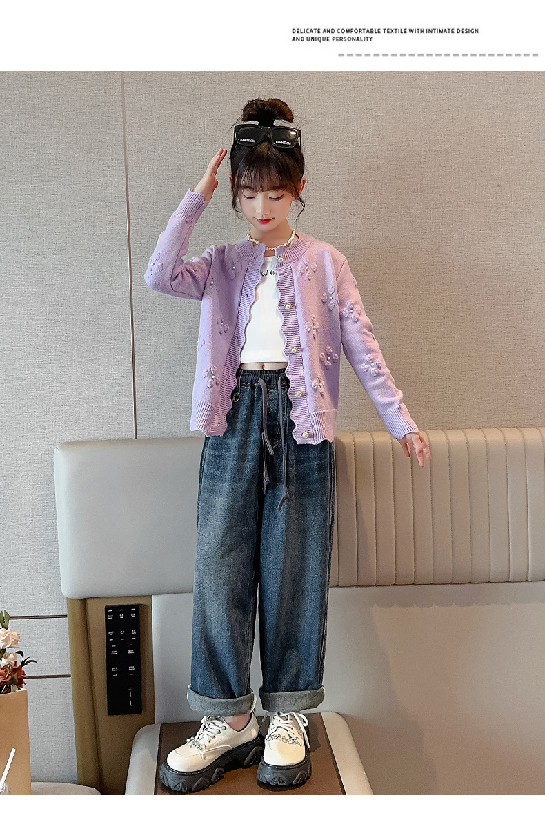 여아 니트 가디건 봄과 가을 2023 새로운 어린이 스웨터 코트 세련된 세련된 라운드 넥 스웨터