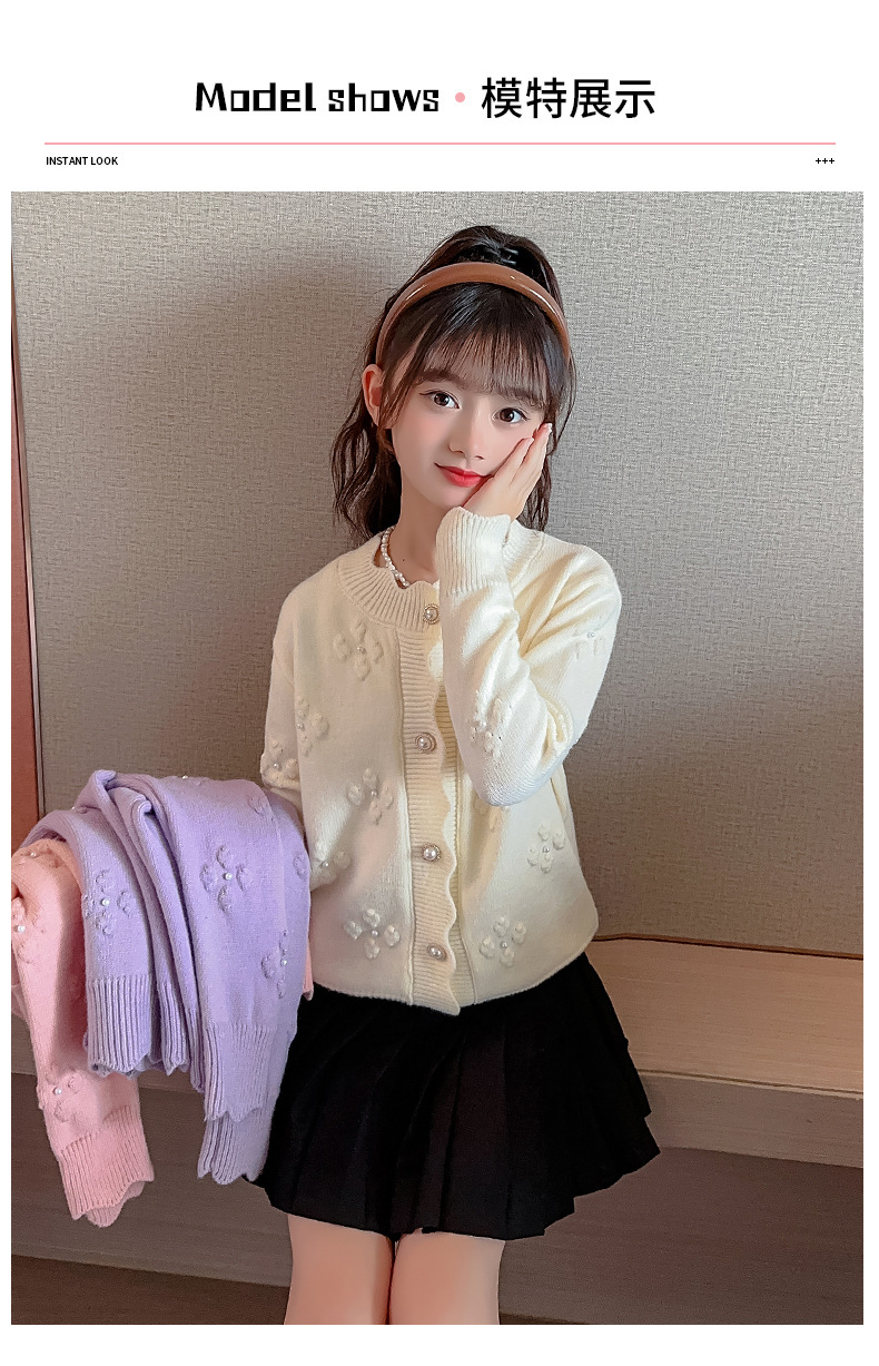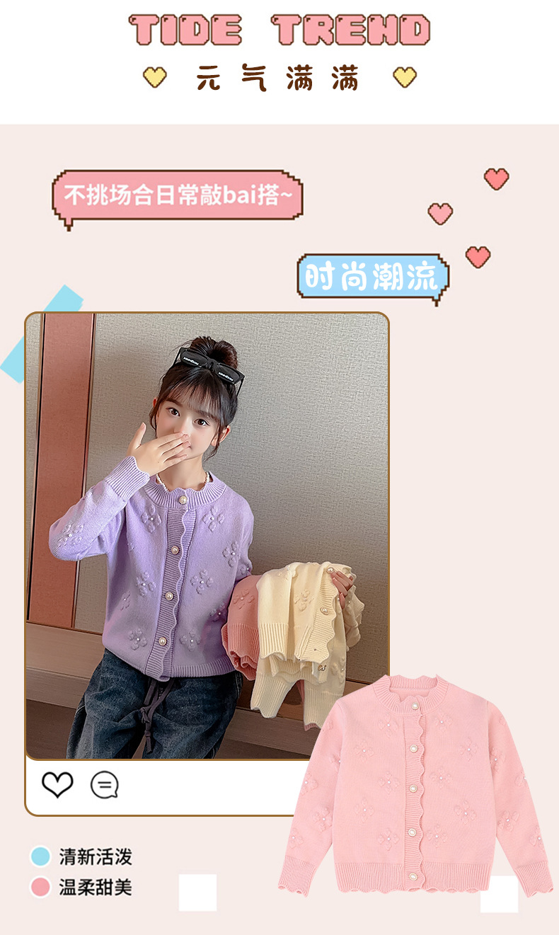 여아 니트 가디건 봄과 가을 2023 새로운 어린이 스웨터 코트 세련된 세련된 라운드 넥 스웨터스토어 가기