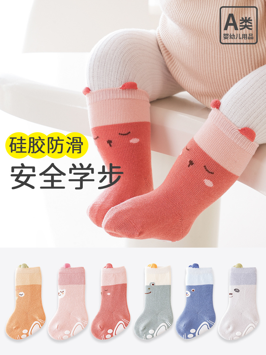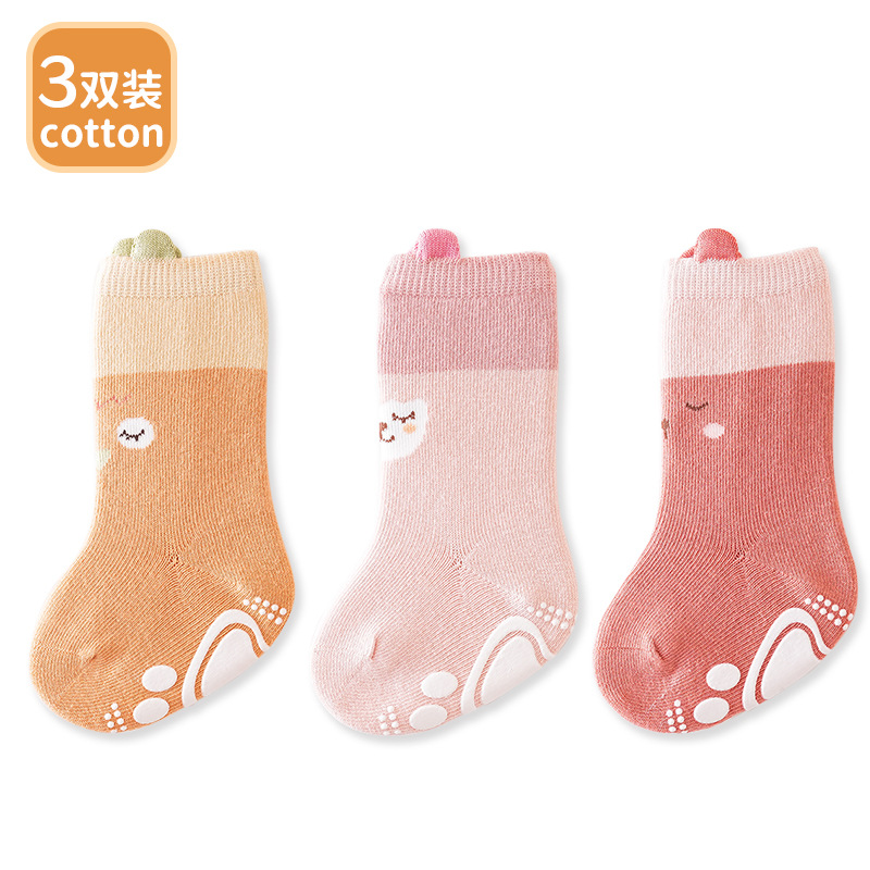 가을과 겨울 아기 유아 양말 유아 바닥 양말 실내 발 커버 남성과 여성의 어린이 양말 멋진 미끄럼 방지 접착제 3 쌍