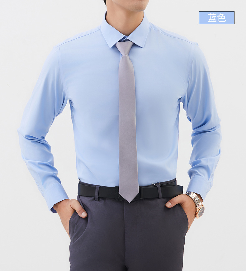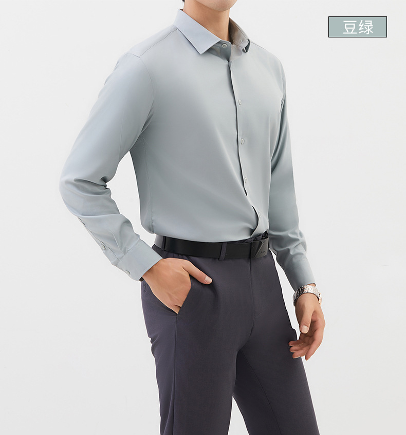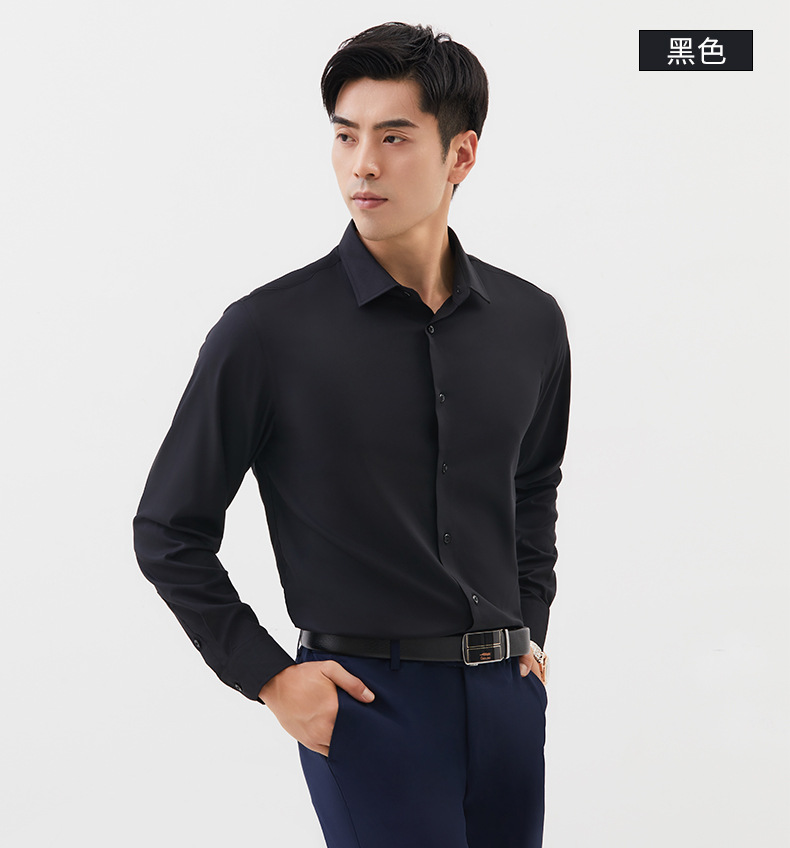 가을 신상 모달 제로센스 온도조절 긴팔 셔츠 남성 슬림핏 심플 솔리드 컬러 트렌디 비즈니스 셔츠 남성용스토어 가기