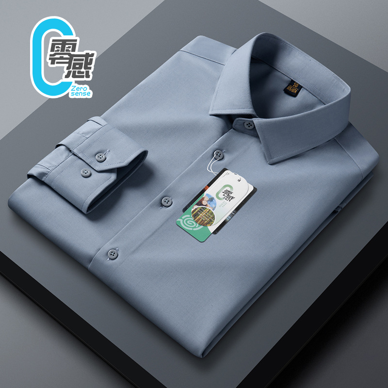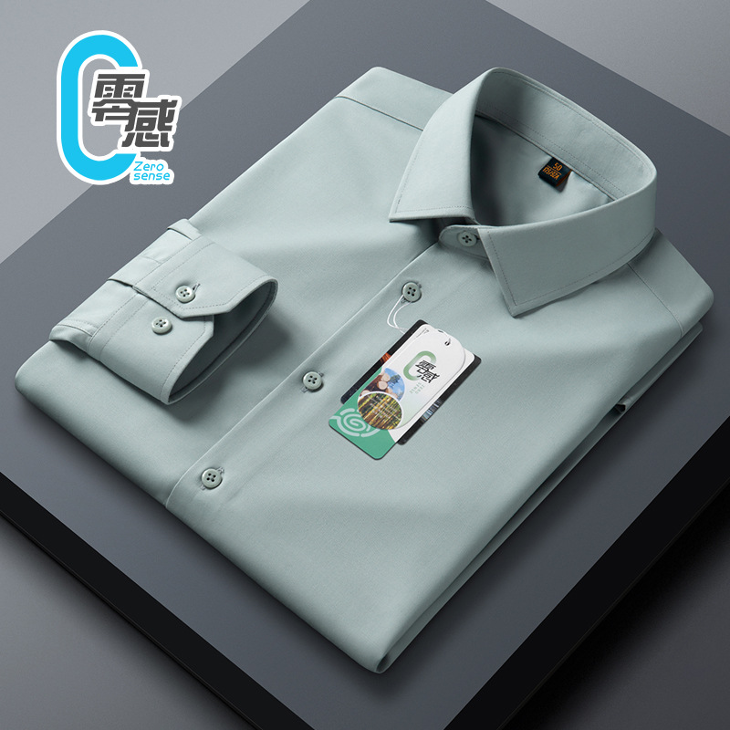 가을 신상 모달 제로센스 온도조절 긴팔 셔츠 남성 슬림핏 심플 솔리드 컬러 트렌디 비즈니스 셔츠 남성용