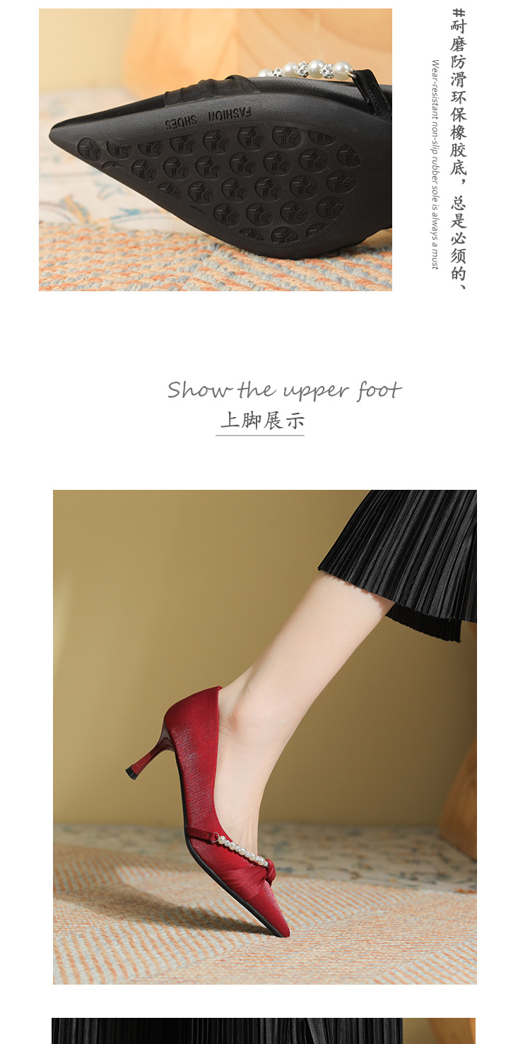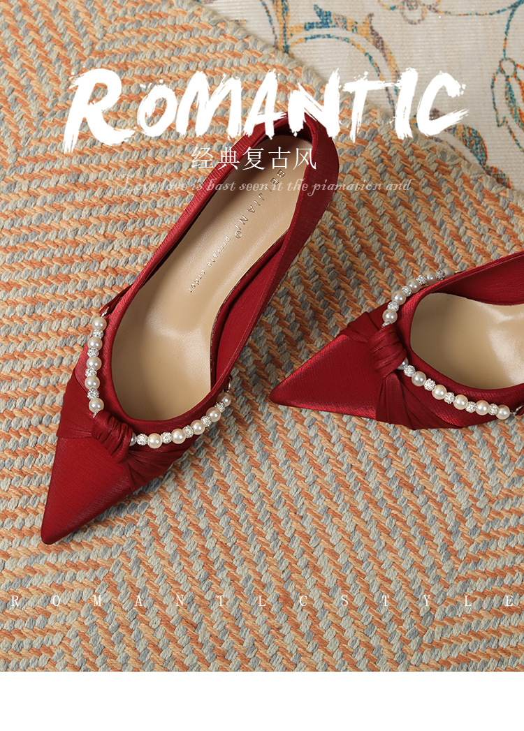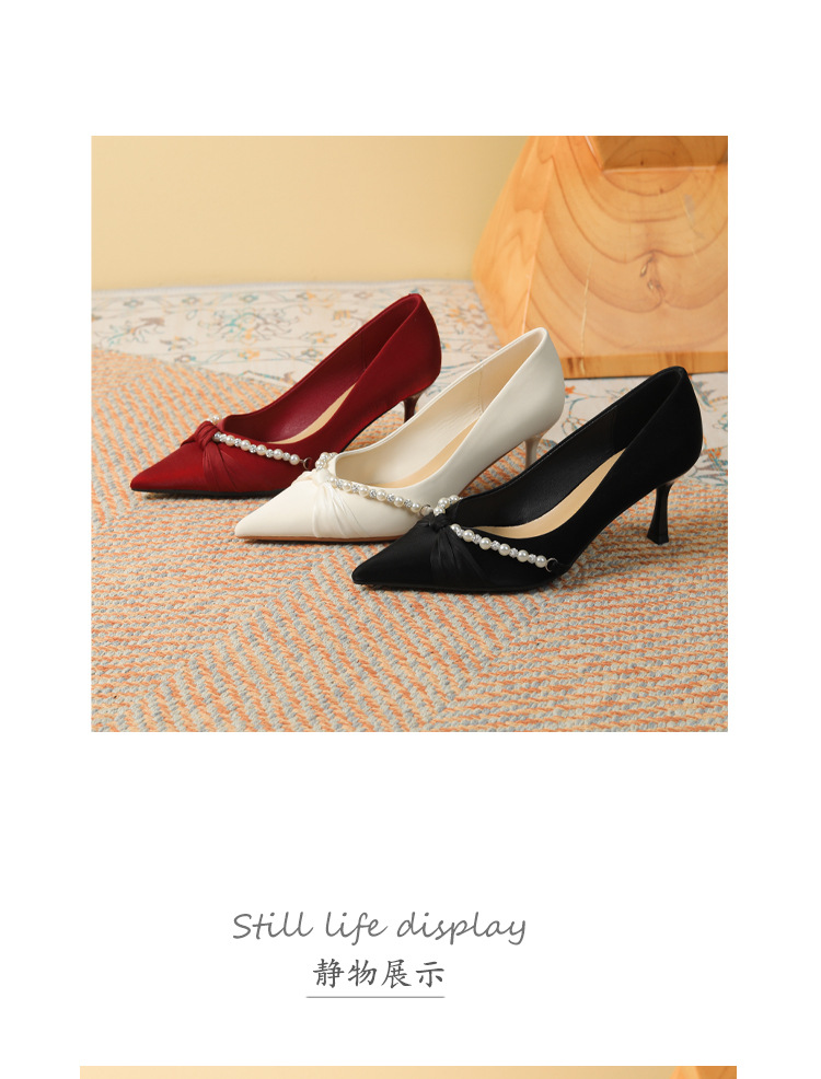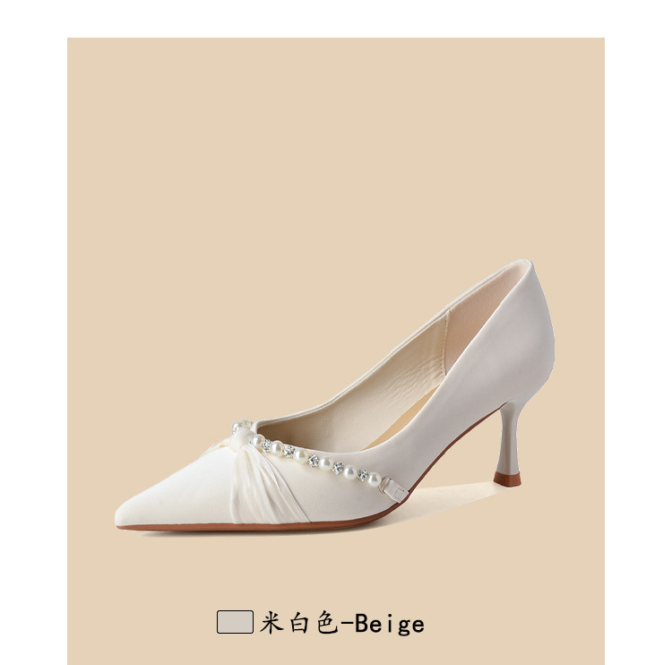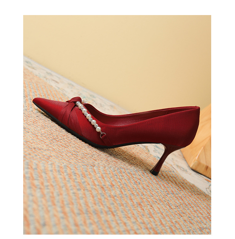 3356-1 꼬임 진주 Xiuhe 웨딩 슈즈 여성용 신부 신발 새틴 양가죽 우아한 하이힐 뾰족한 얇은 굽 단일 신발스토어 가기