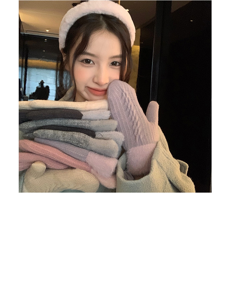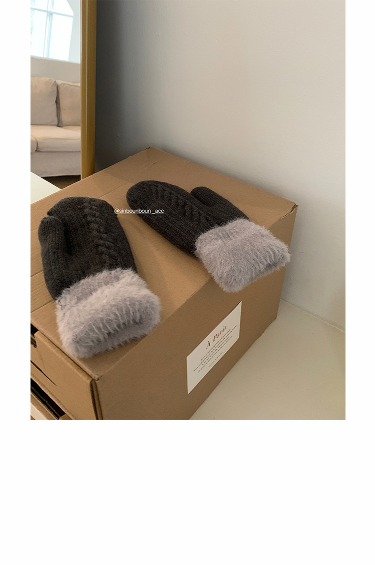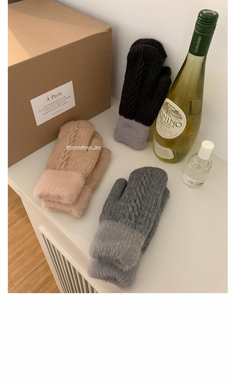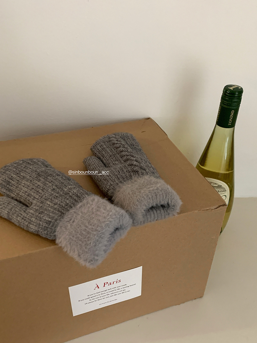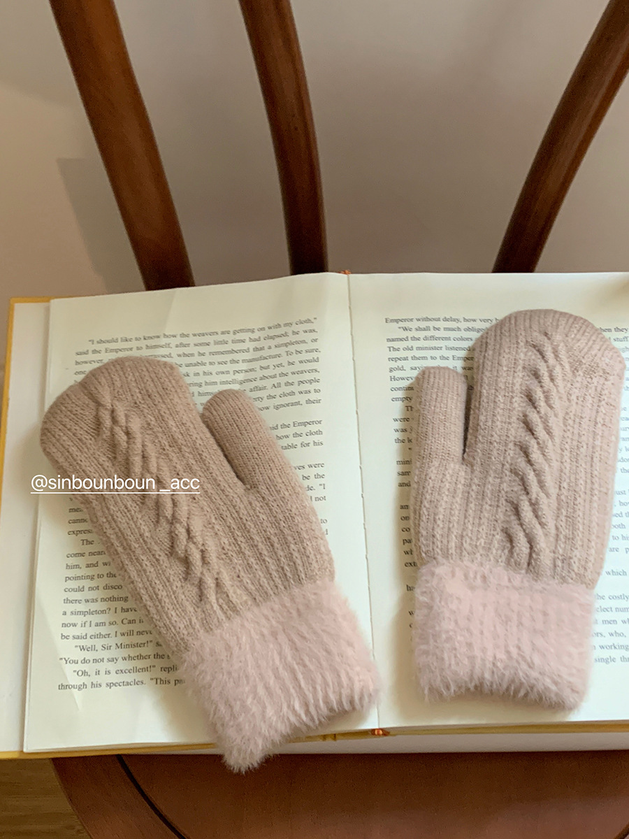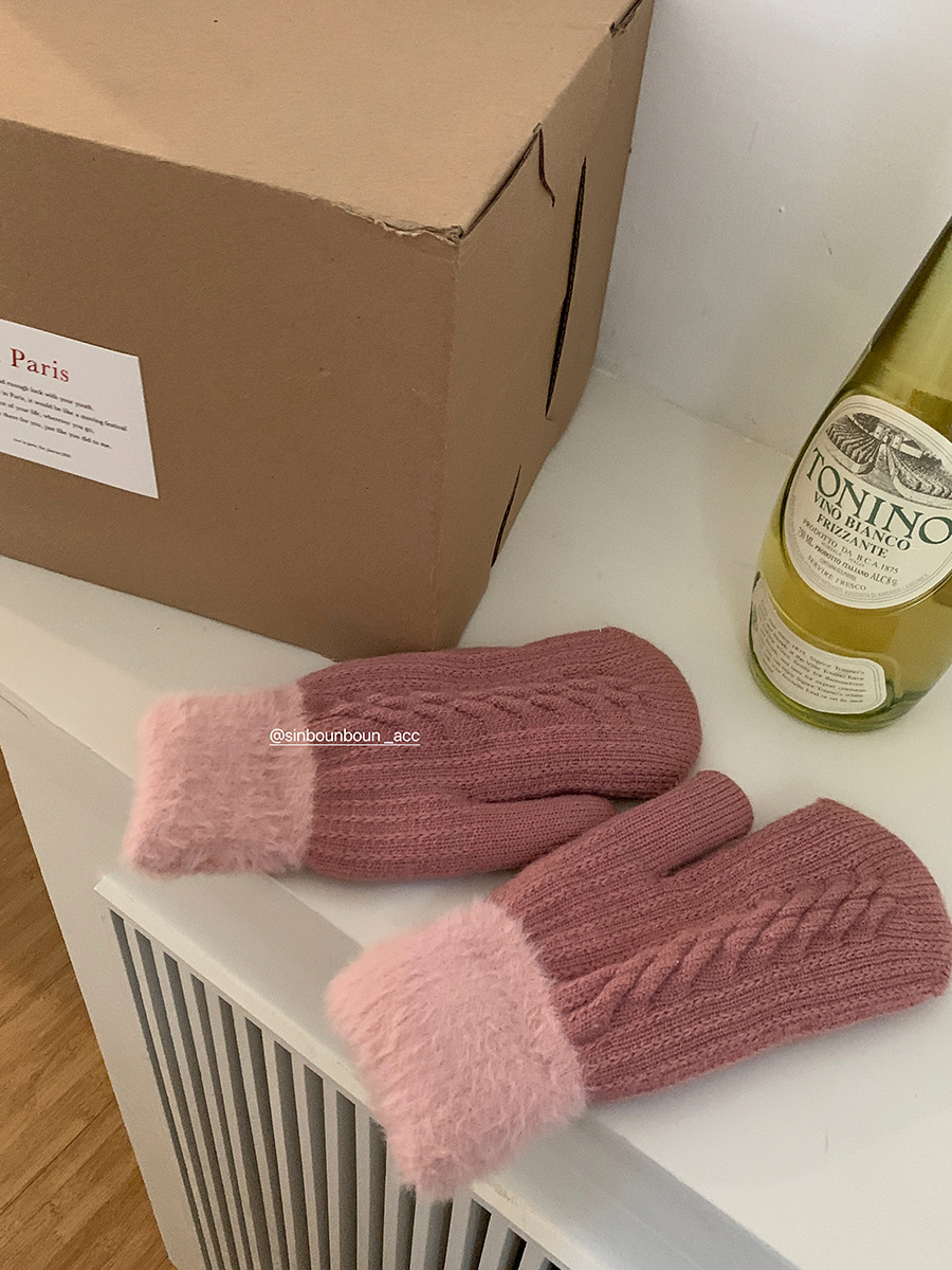 방한 라이딩 따뜻한 장갑 여성용 겨울 봉제 학생의 서리 방지 기모 두꺼운 니트 핑거 백 한국 스타일스토어 가기