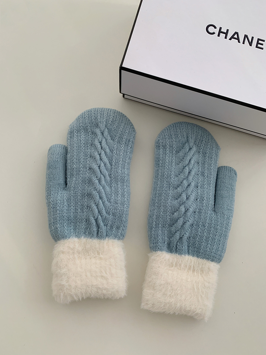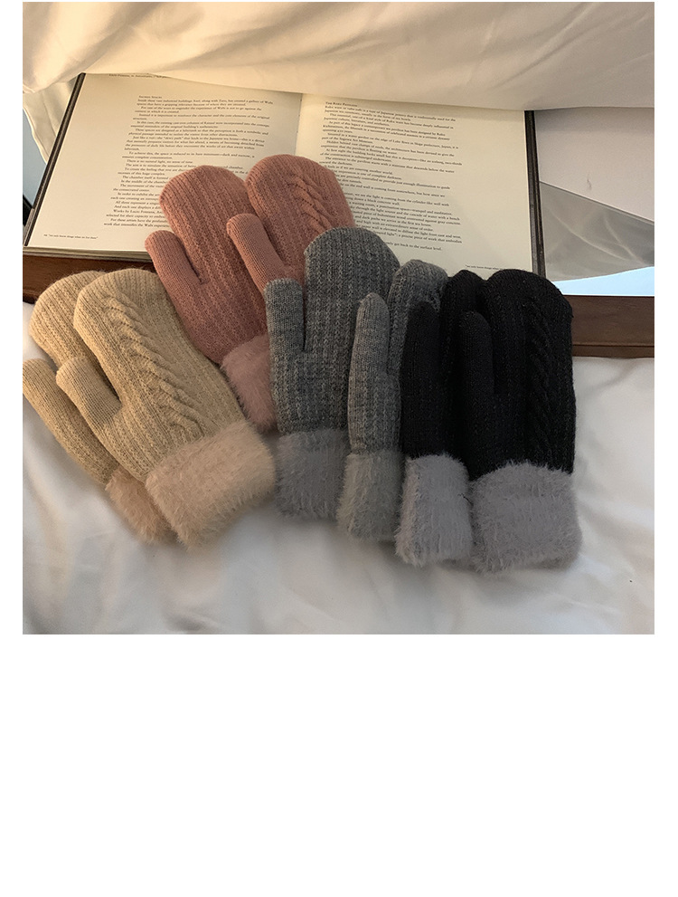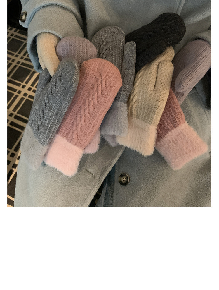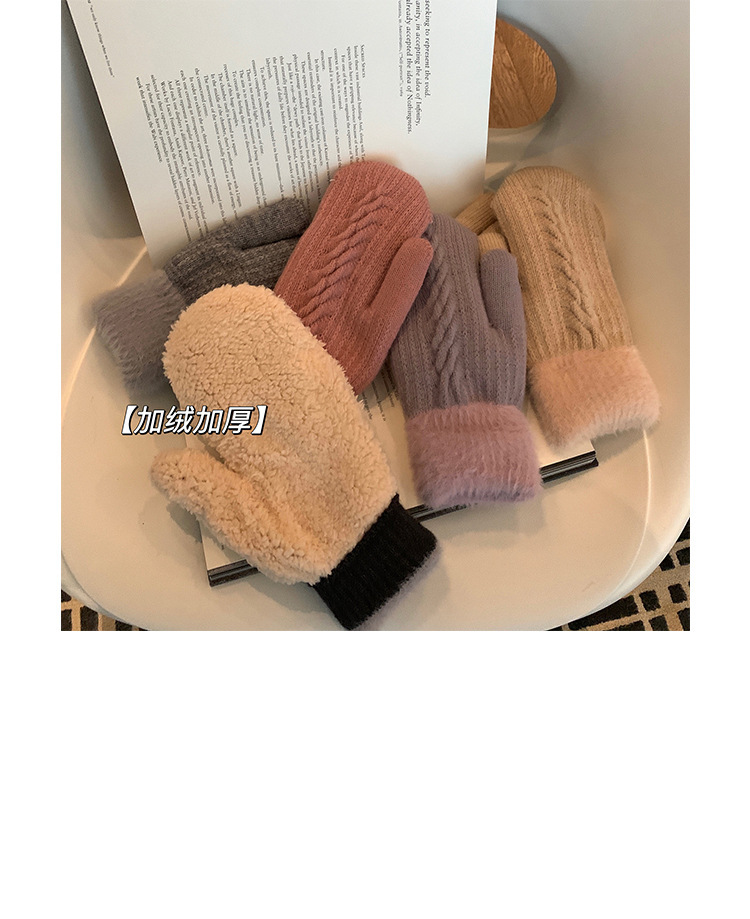 방한 라이딩 따뜻한 장갑 여성용 겨울 봉제 학생의 서리 방지 기모 두꺼운 니트 핑거 백 한국 스타일
