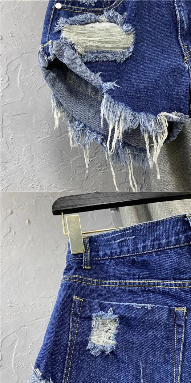 인스 섹시 로우 웨이스트 데님 반바지 여성 여름옷 로우 엣지 팬츠 2026 신상 한국 스타일 루즈핏 데미지 A라인 와이드 팬츠스토어 가기