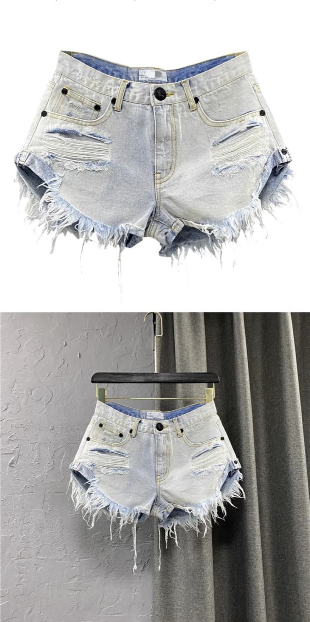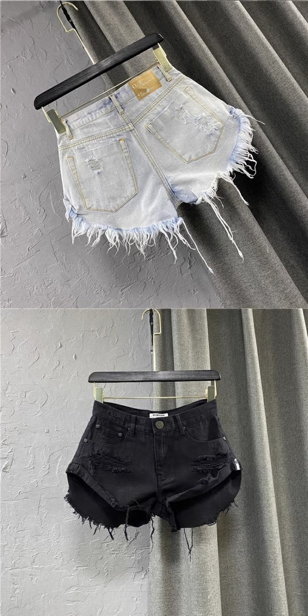 인스 섹시 로우 웨이스트 데님 반바지 여성 여름옷 로우 엣지 팬츠 2026 신상 한국 스타일 루즈핏 데미지 A라인 와이드 팬츠