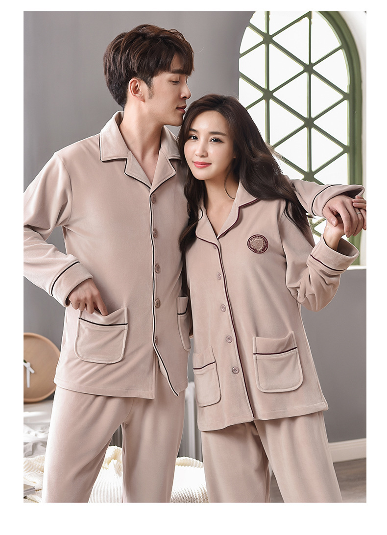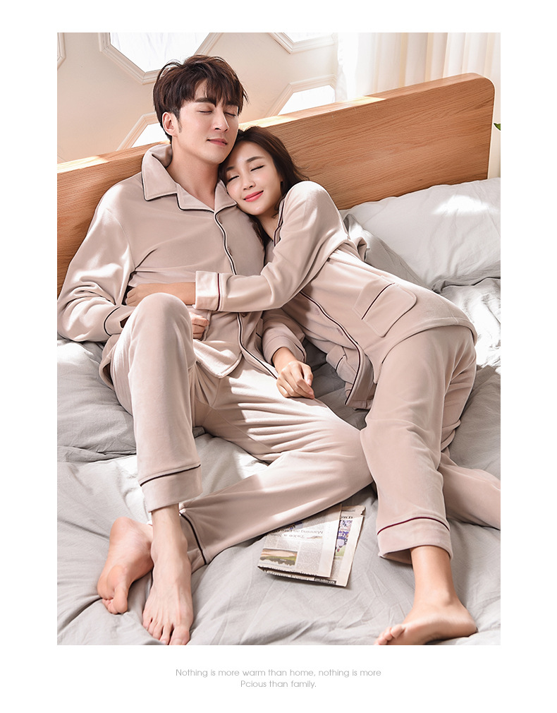 남성과 여성을위한 간단한 커플 잠옷 봄과 가을 섬 양털 산호 양털 긴 소매 따뜻한 가정 옷 가을과 겨울 세트스토어 가기