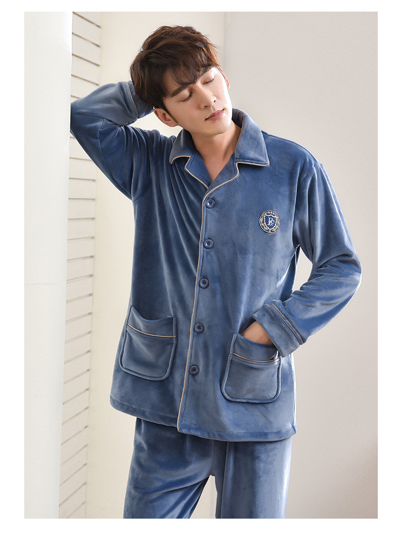 남성과 여성을위한 간단한 커플 잠옷 봄과 가을 섬 양털 산호 양털 긴 소매 따뜻한 가정 옷 가을과 겨울 세트