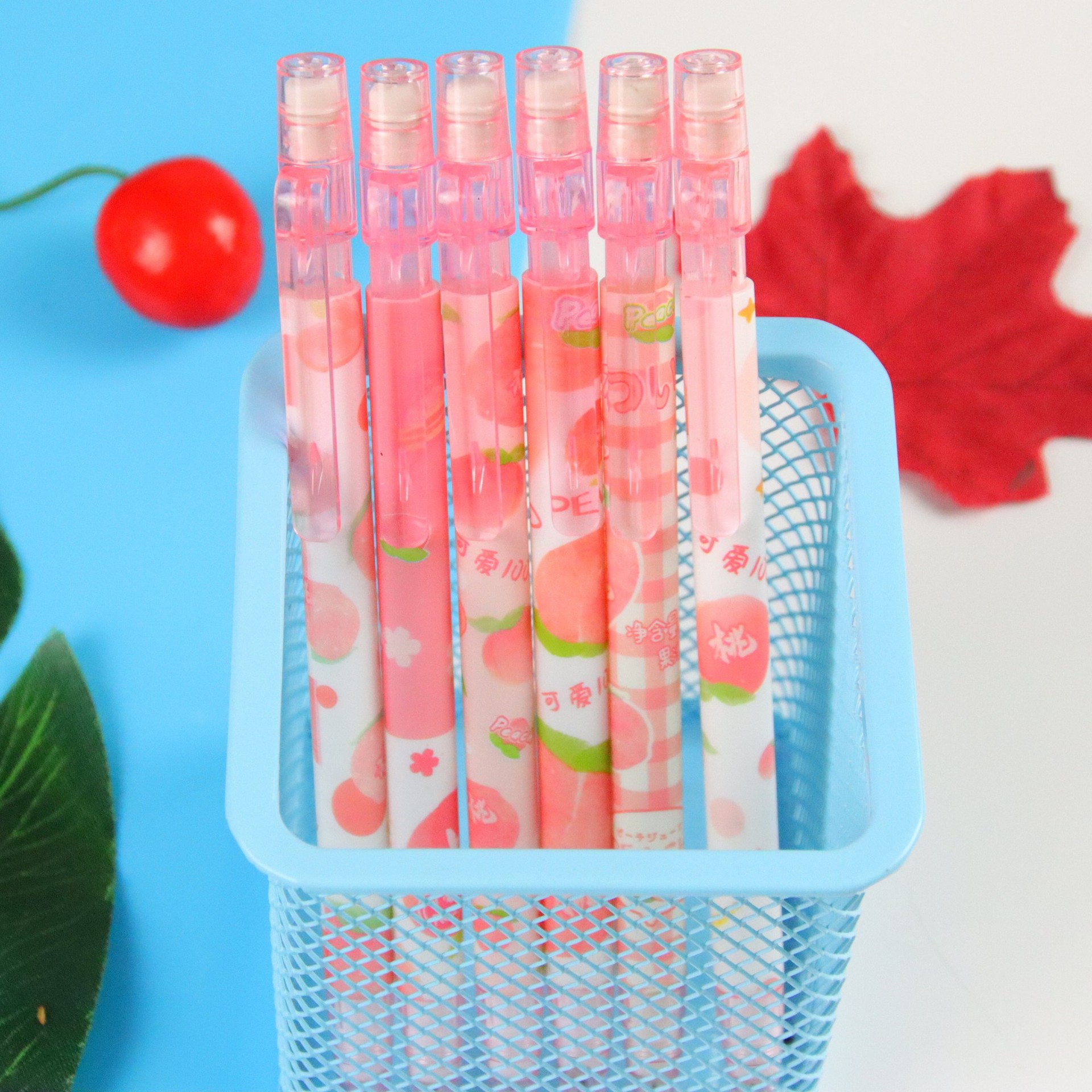복숭아 주스 자동 연필 노 커팅 활동 연필 창조적 인 문구 학생 쓰기 연습 프레스 연필 도매