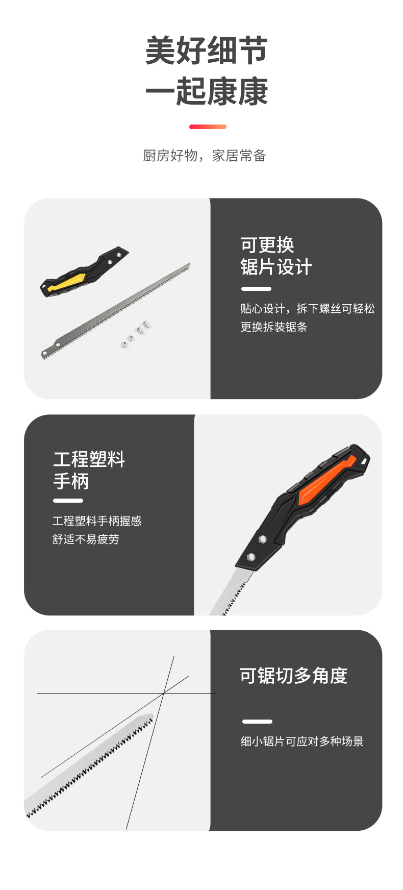 4 색 칵테일 톱 스테인레스 스틸 미끄럼 방지 손잡이 톱 작은 손 톱 로깅 톱 정원 도구 목공 톱 수제 톱