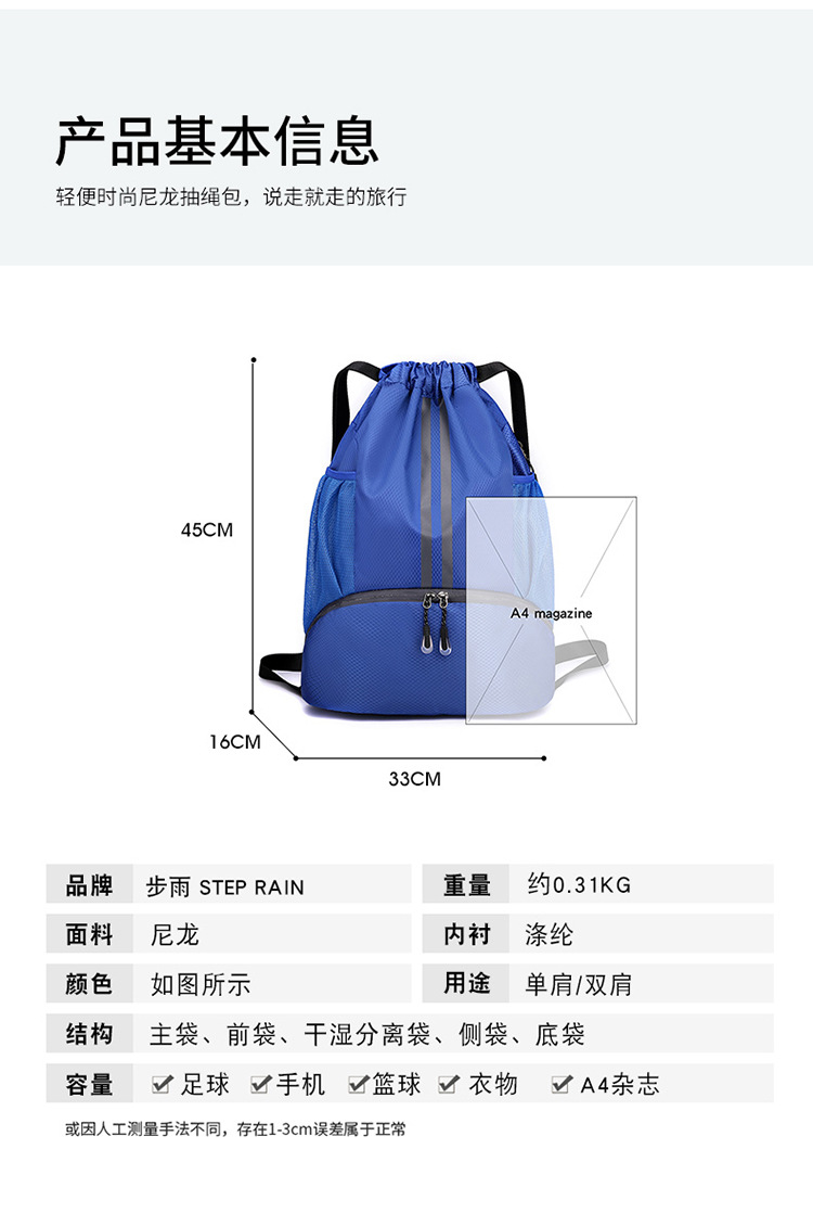 농구 가방 훈련 가방 건식 및 습식 분리 배낭 여성용 보관 스포츠 훈련 피트니스 번들 졸라매는 끈 가방스토어 가기
