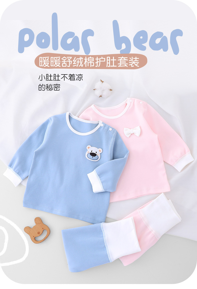 아기의 가정 옷 봄과 가을 아기의 가을 옷과 바지 세트 하이 웨이스트 분할 속옷 양털 면 잠옷 가을 순면스토어 가기