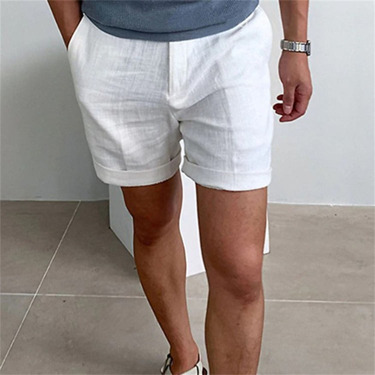 남성용 린넨 경사 포켓 솔리드 컬러 편안한 통기성 야외 스포츠 데일리 반바지