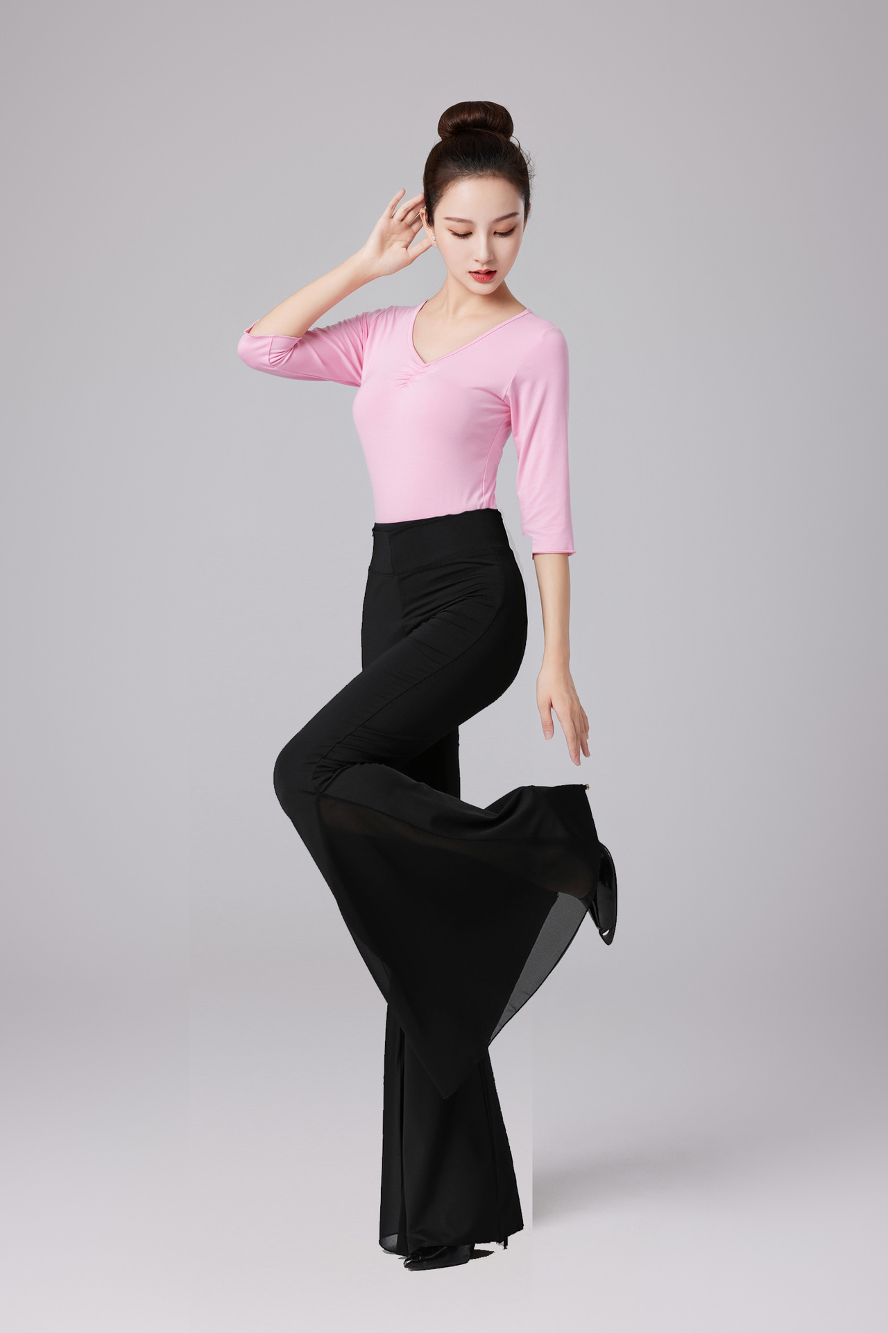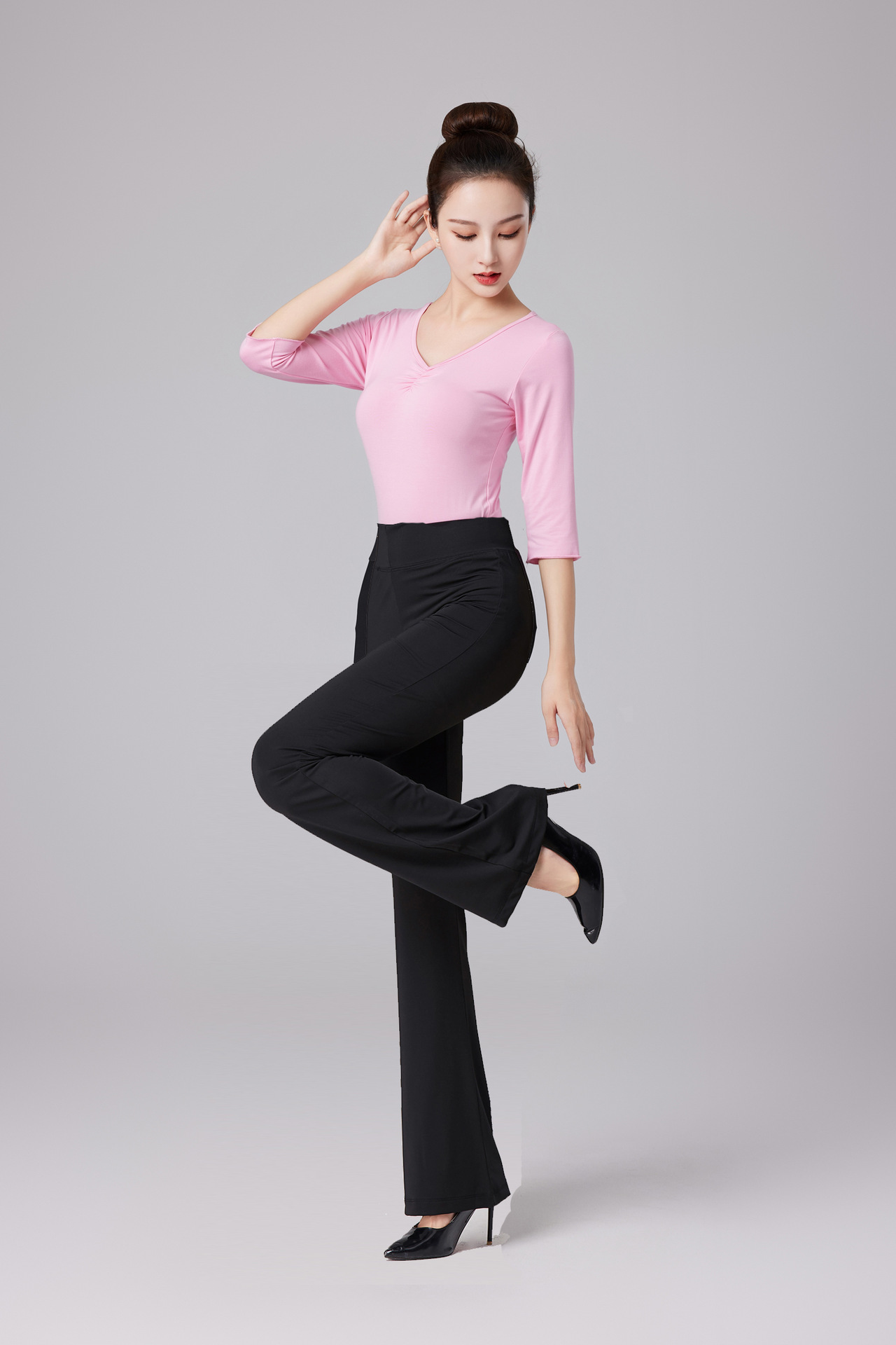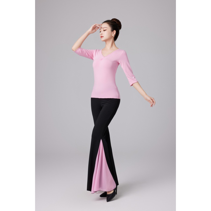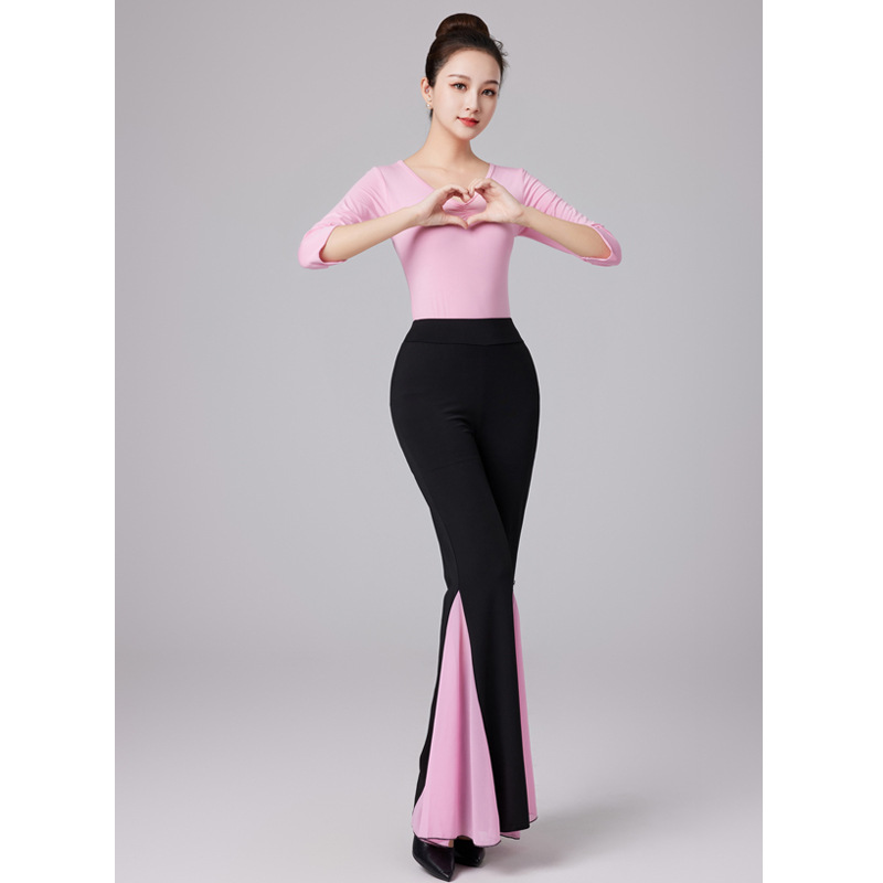 핑크 바디 원피스 컬러 블록 빅 스피커 바지 세트 에티켓 모델 트레이닝 의류 탄성 댄스 트레이닝 의류 여성스토어 가기