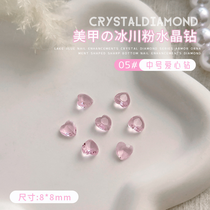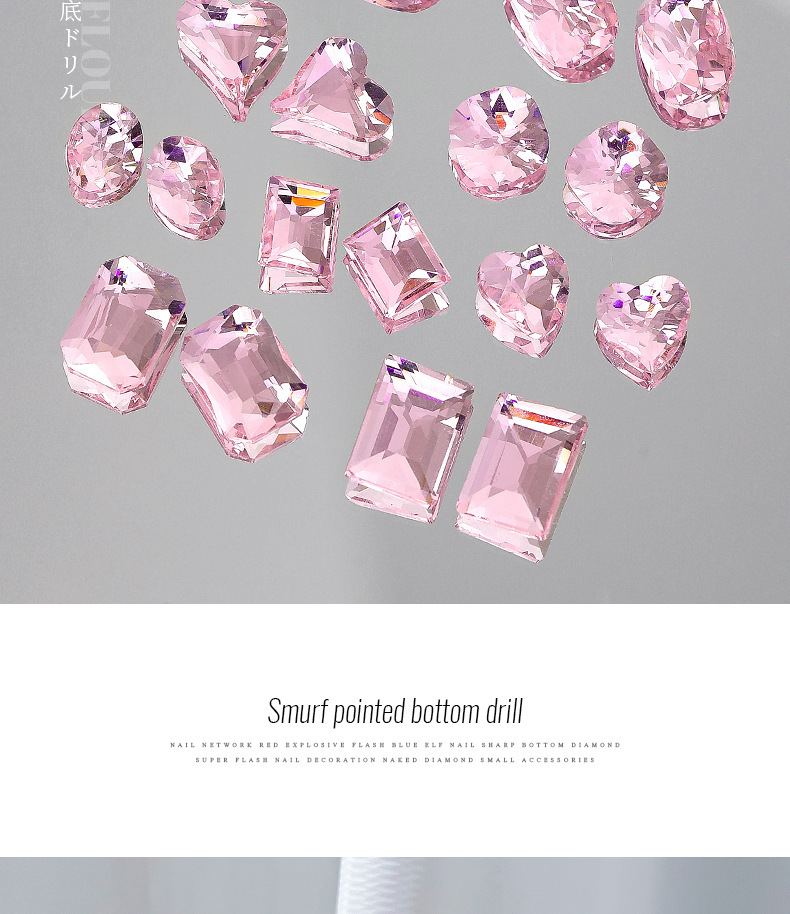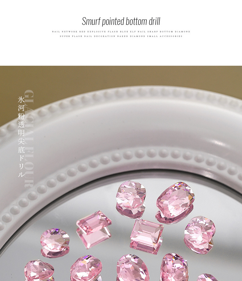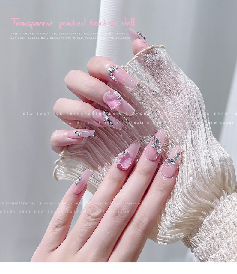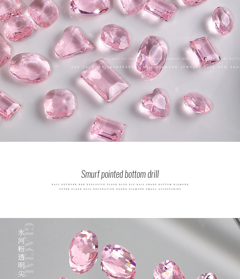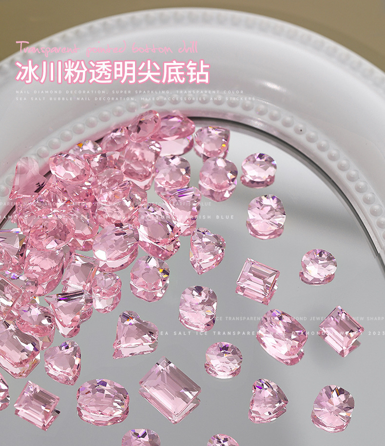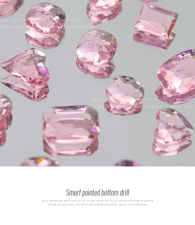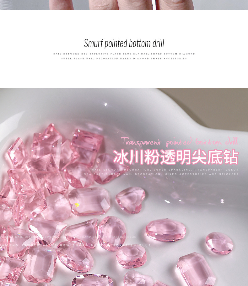 빙하 핑크 슈퍼 플래시 투명 캔디 다이아몬드 네일 아트 다이아몬드 보석 사랑 비뚤어진 심장 네일 액세서리 바닥 뾰족한 다이아몬드를 통해스토어 가기