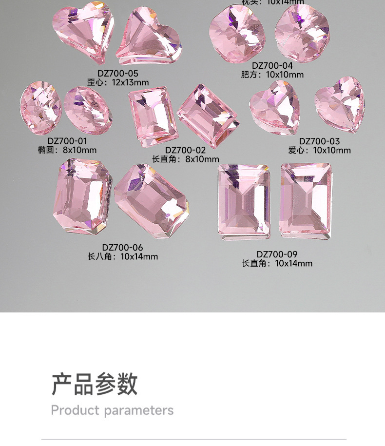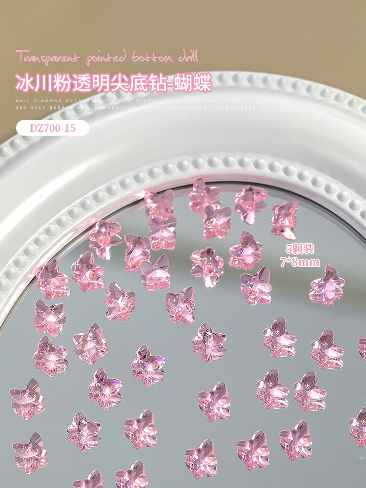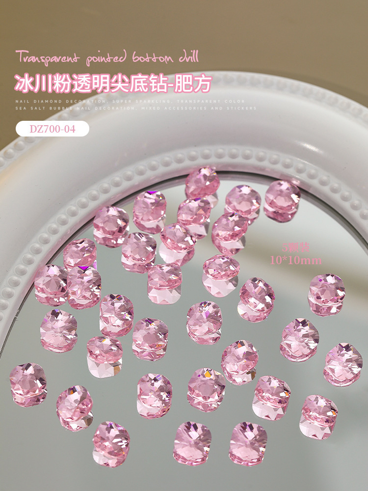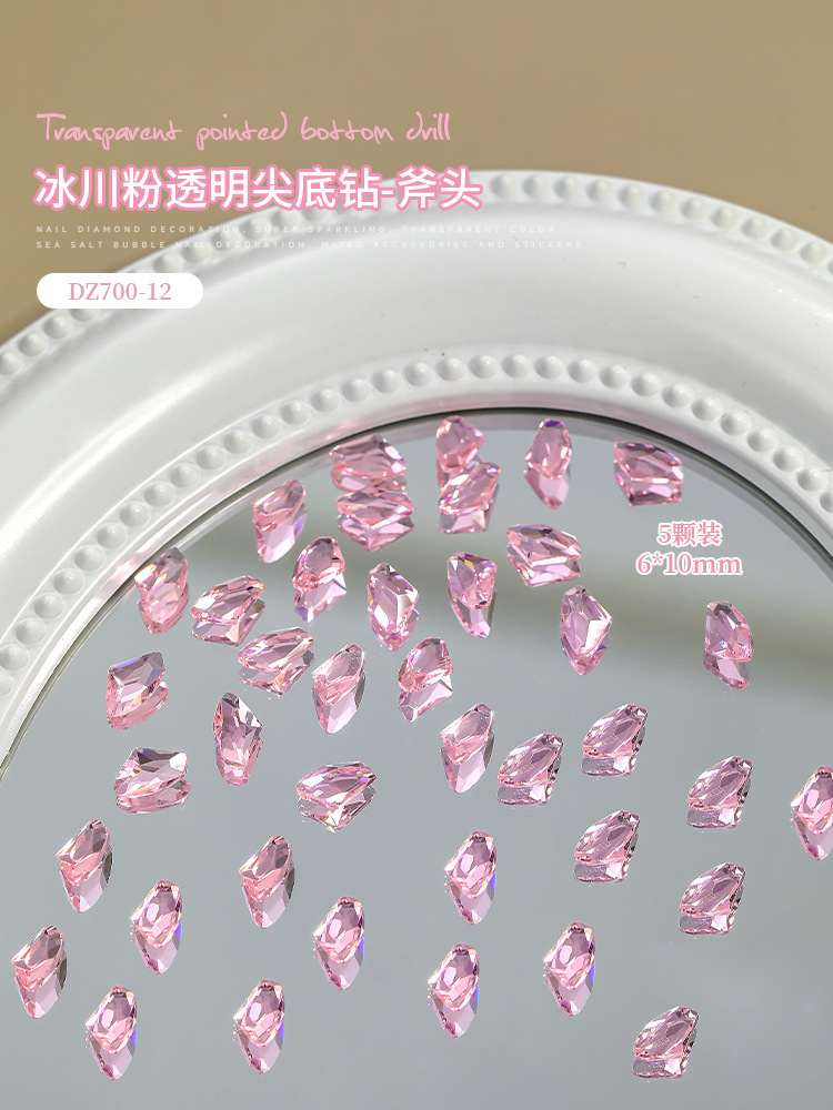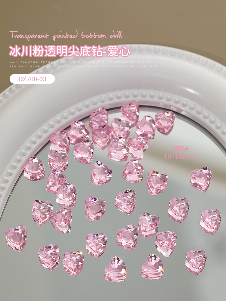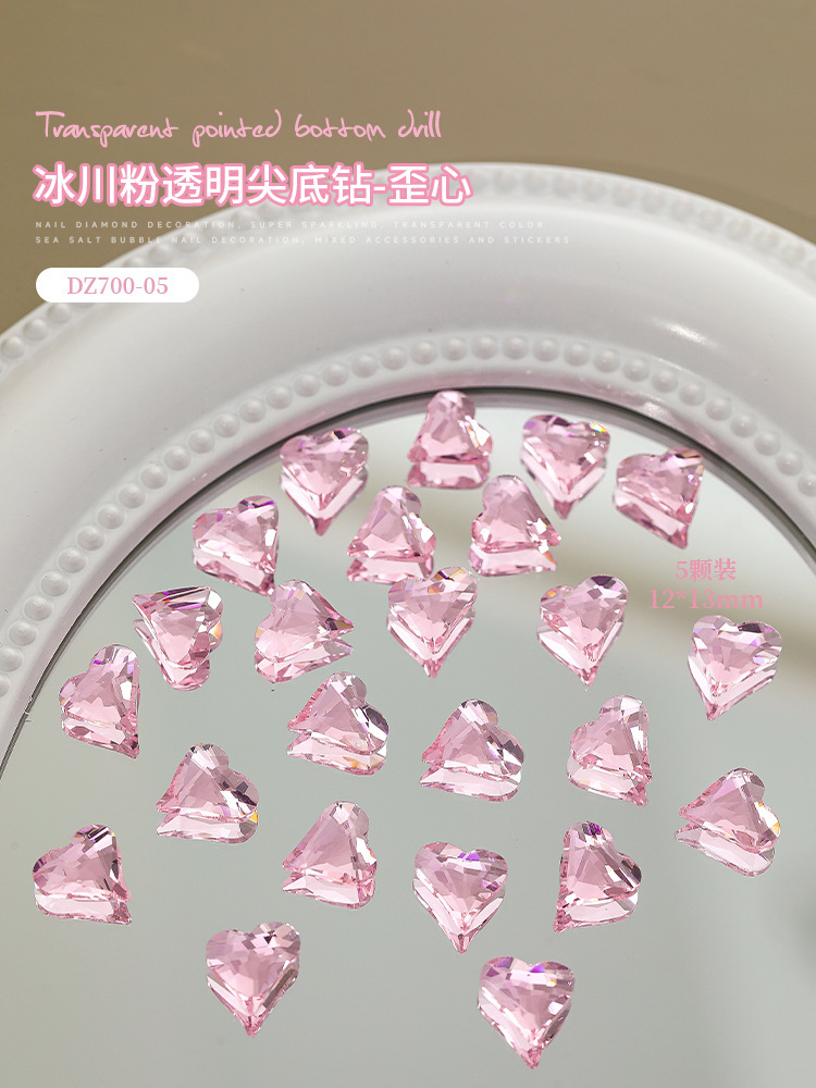 빙하 핑크 슈퍼 플래시 투명 캔디 다이아몬드 네일 아트 다이아몬드 보석 사랑 비뚤어진 심장 네일 액세서리 바닥 뾰족한 다이아몬드를 통해