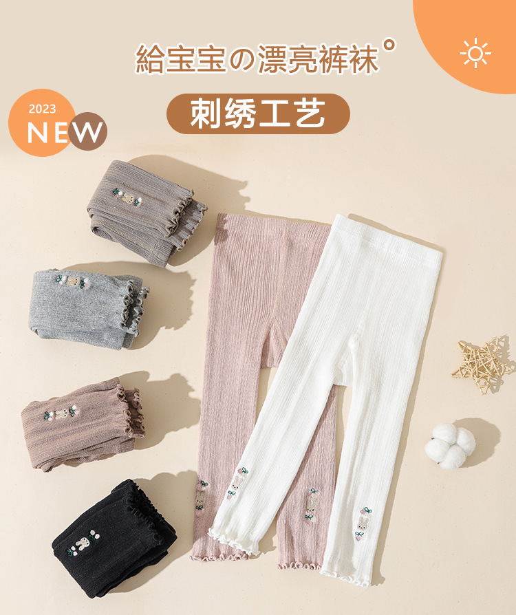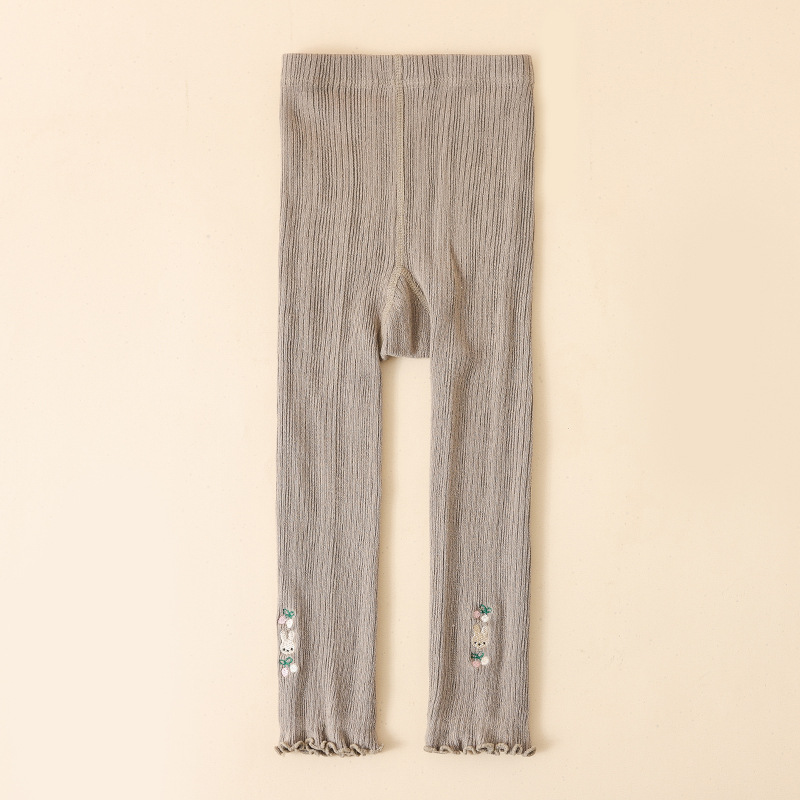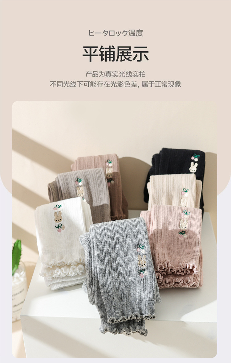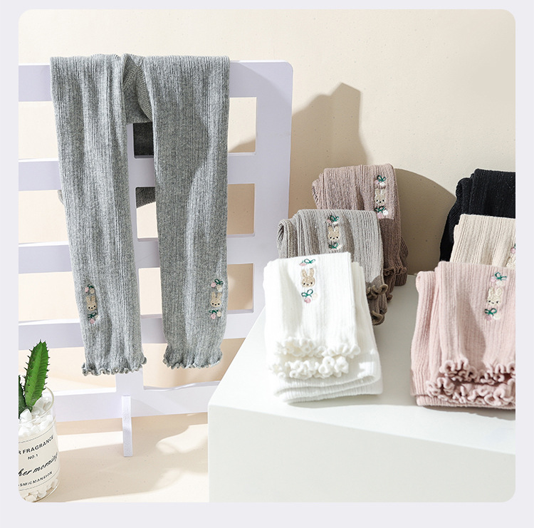가을 새로운 자수 토끼 귀 어린이 양말 발목 길이 바지 소녀 외부 착용 귀여운 다리 양말