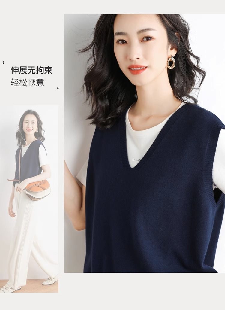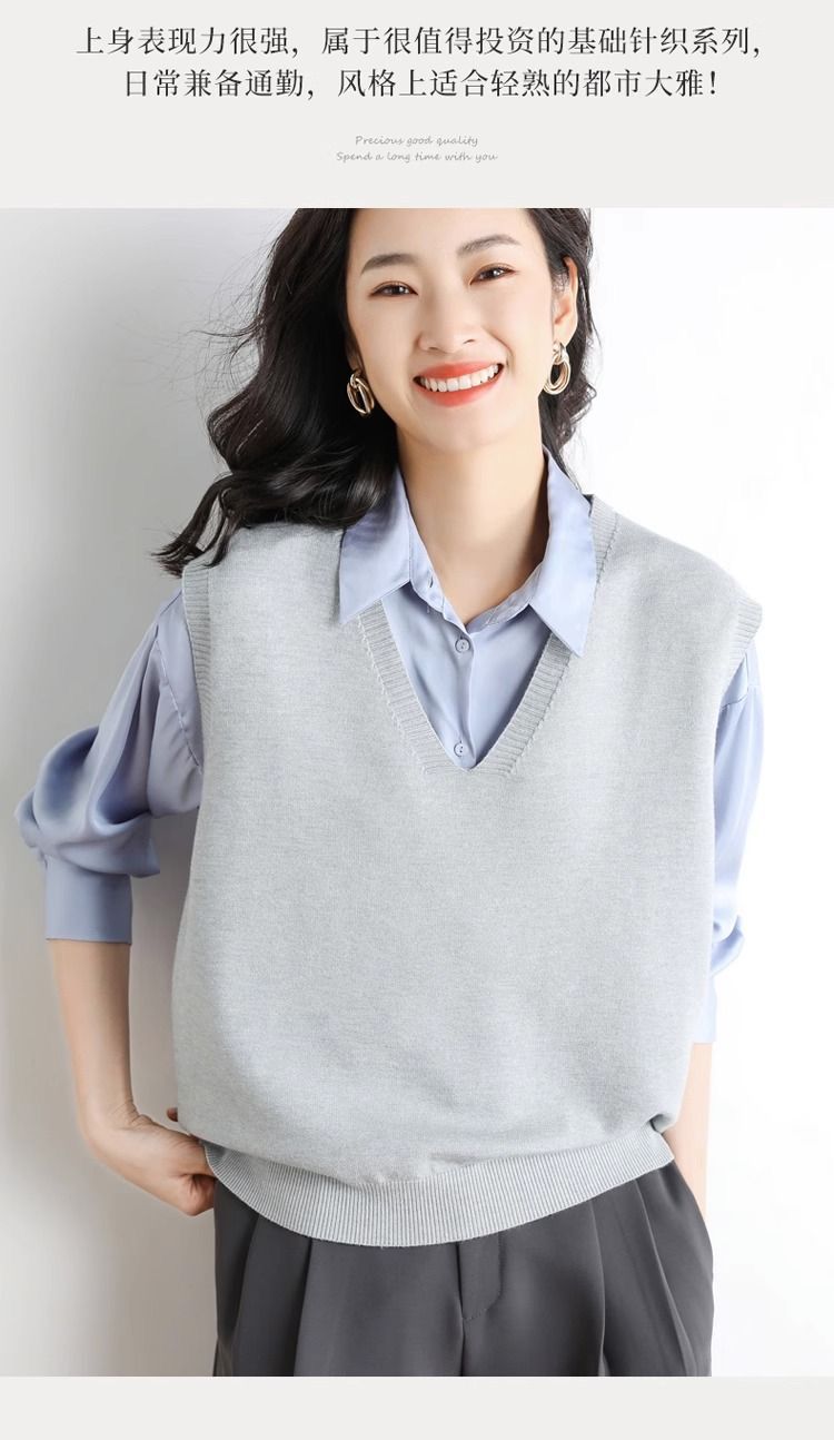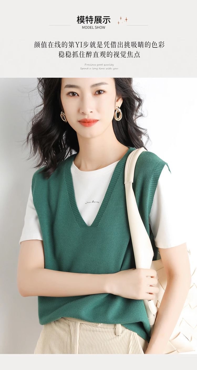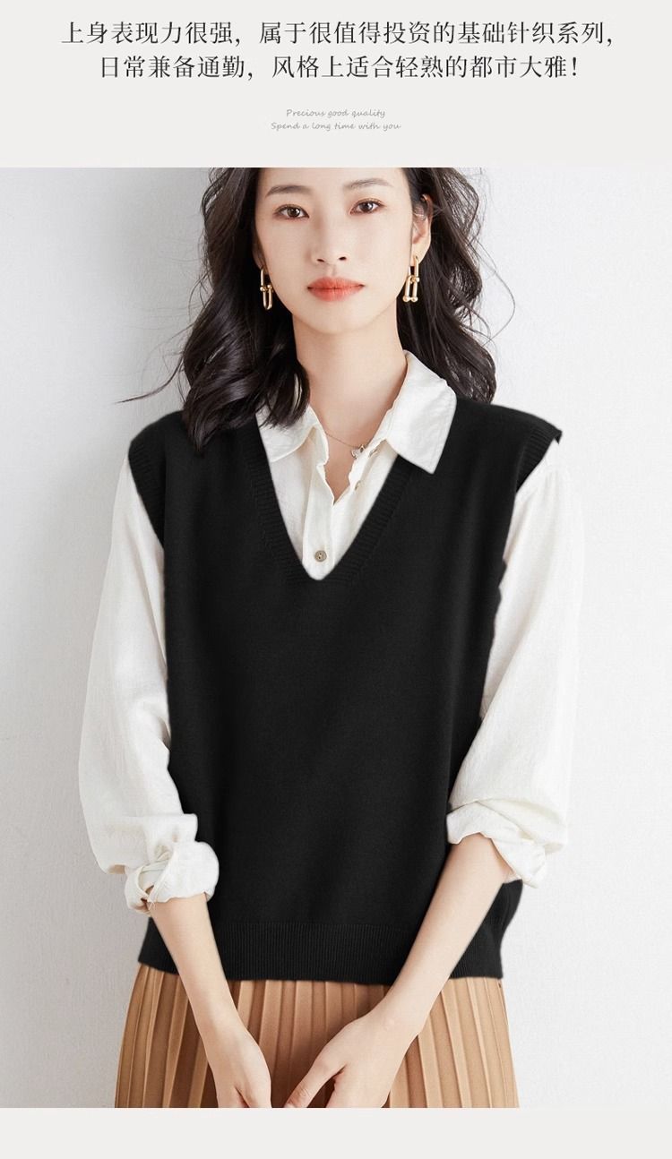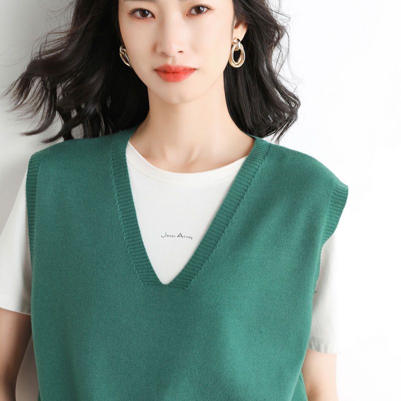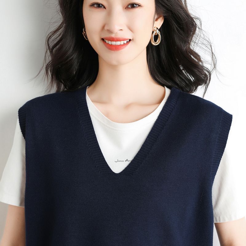 가을과 겨울 여성의 새로운 니트 조끼 조끼 단색 민소매 탑 V-넥 스웨터스토어 가기