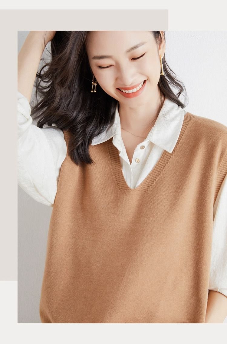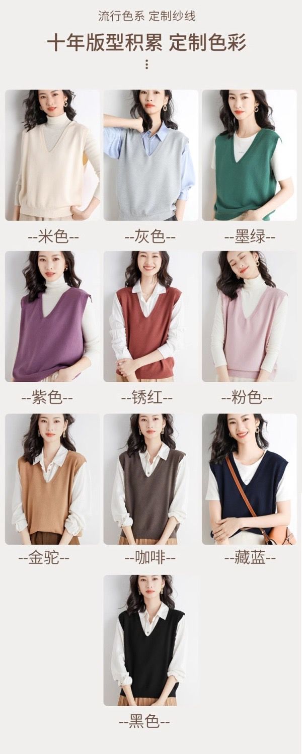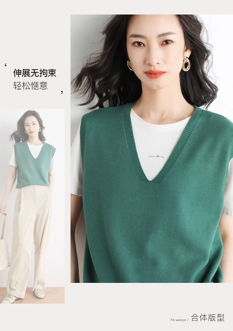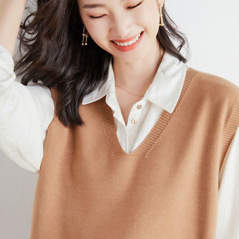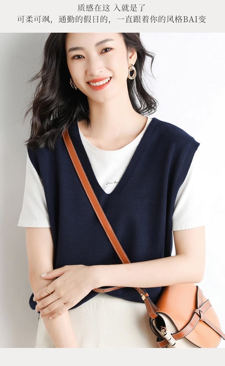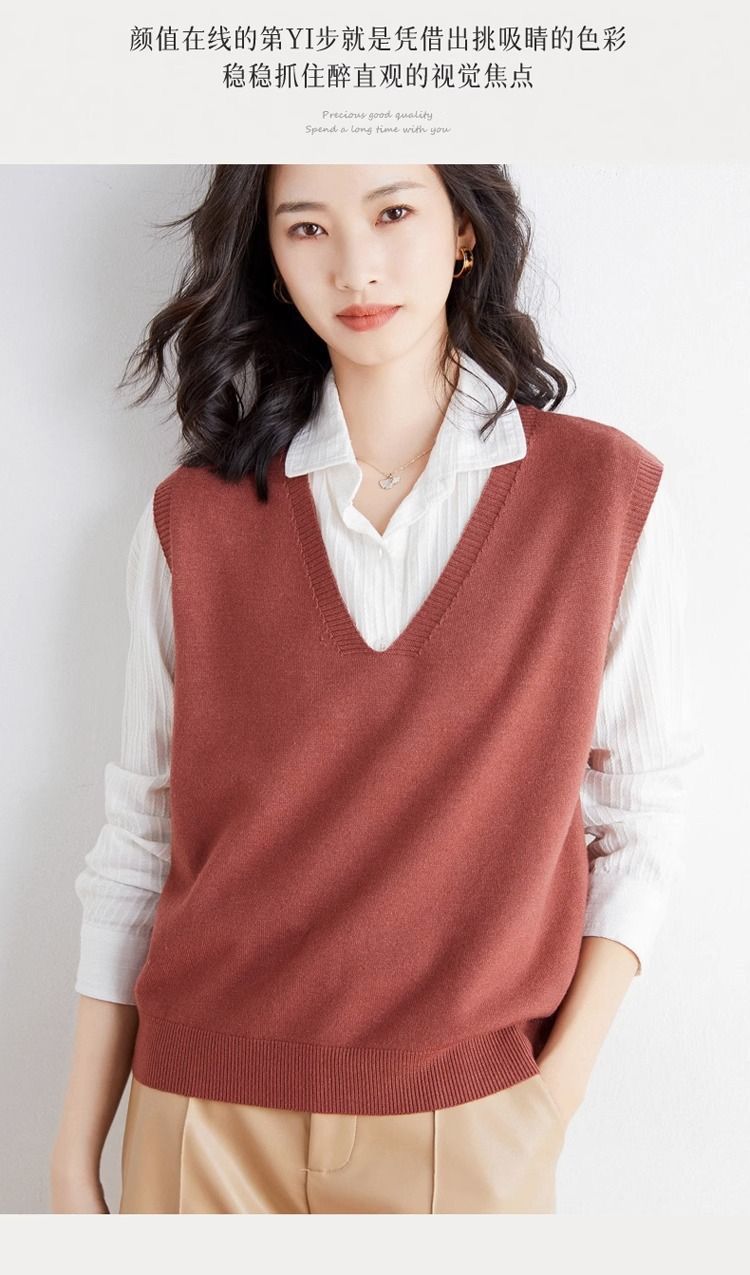가을과 겨울 여성의 새로운 니트 조끼 조끼 단색 민소매 탑 V-넥 스웨터스토어 가기