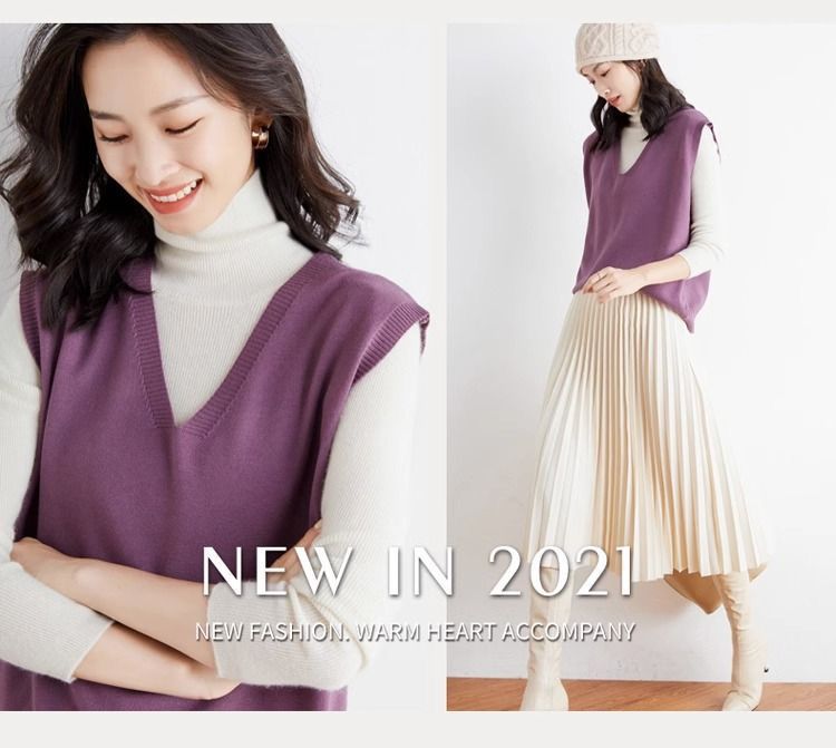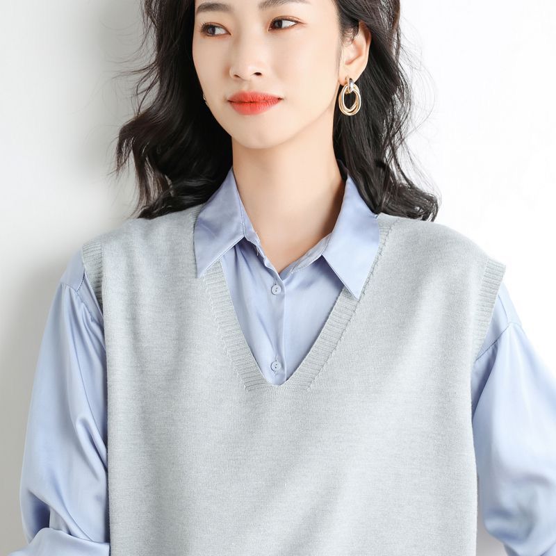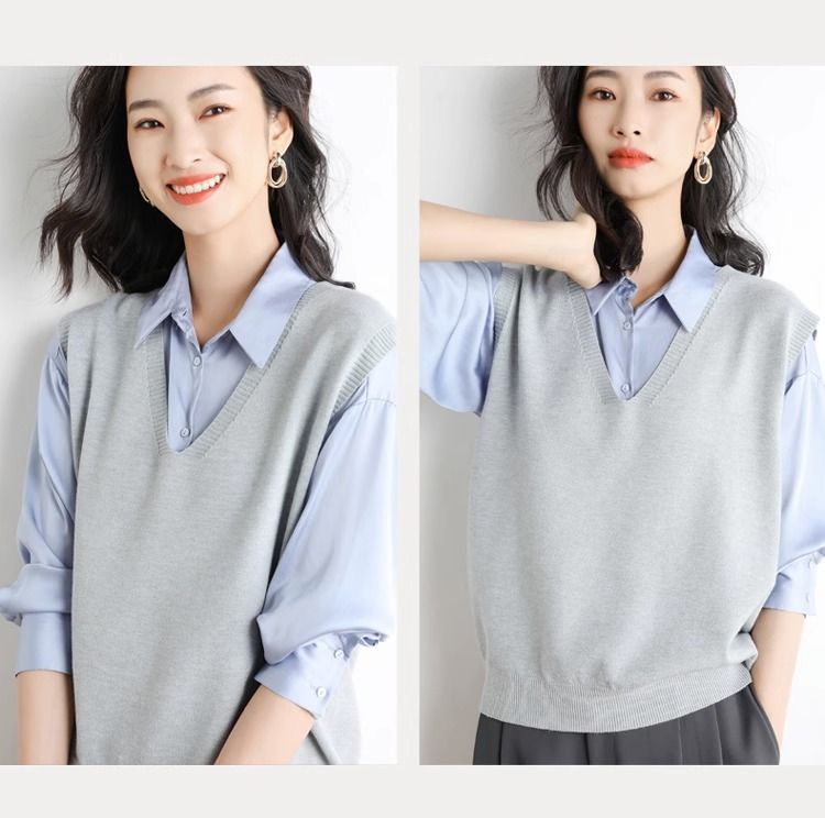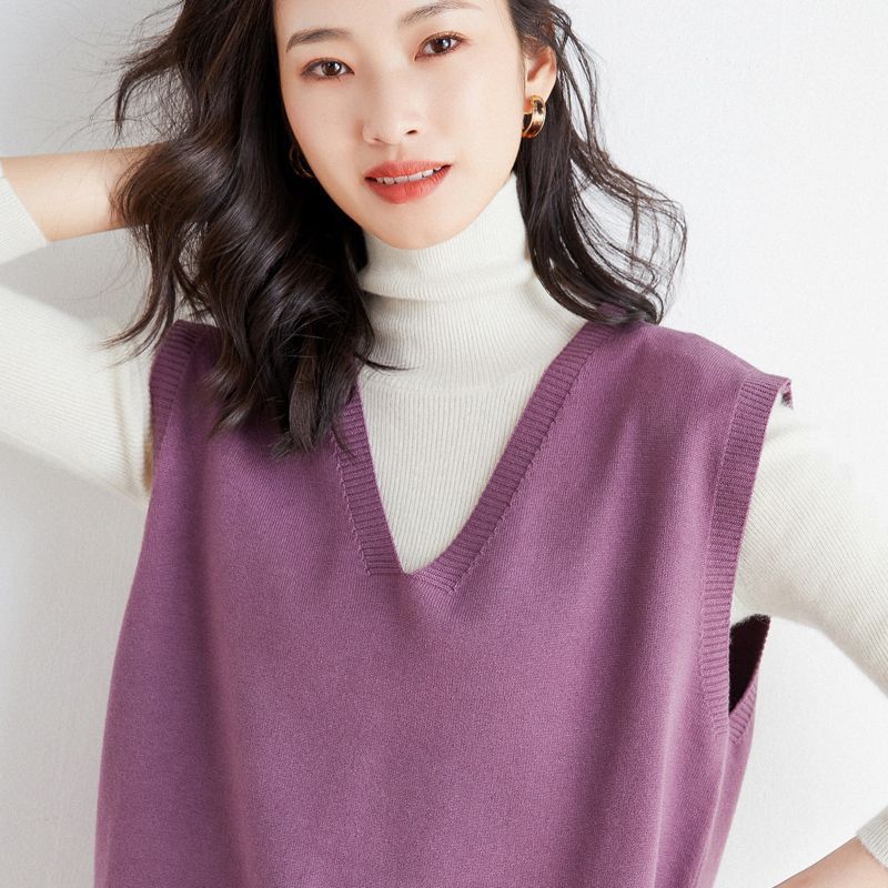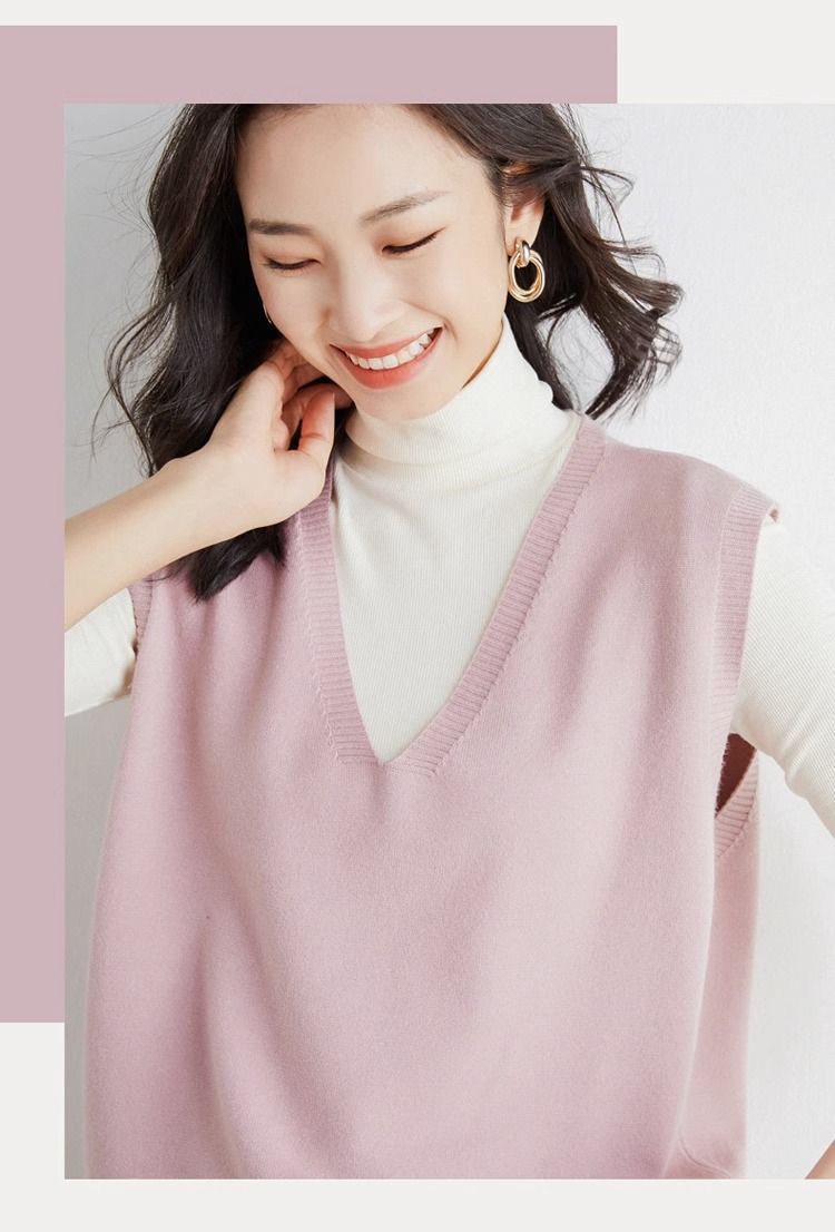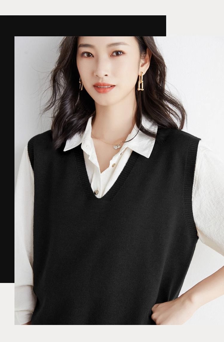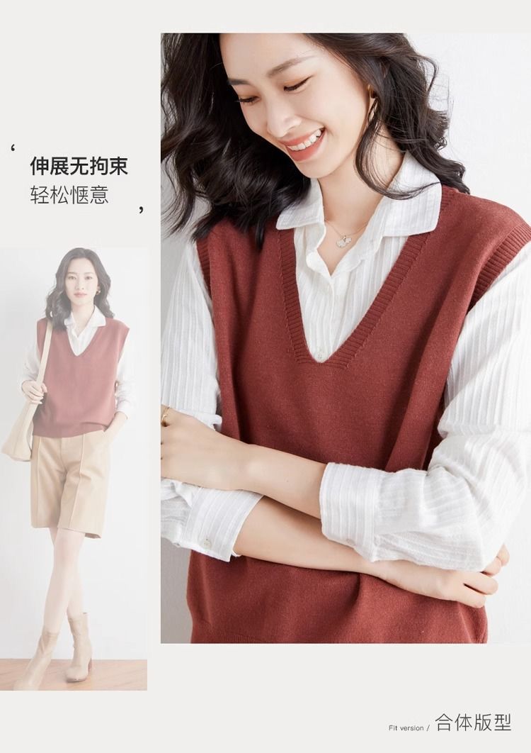 가을과 겨울 여성의 새로운 니트 조끼 조끼 단색 민소매 탑 V-넥 스웨터스토어 가기